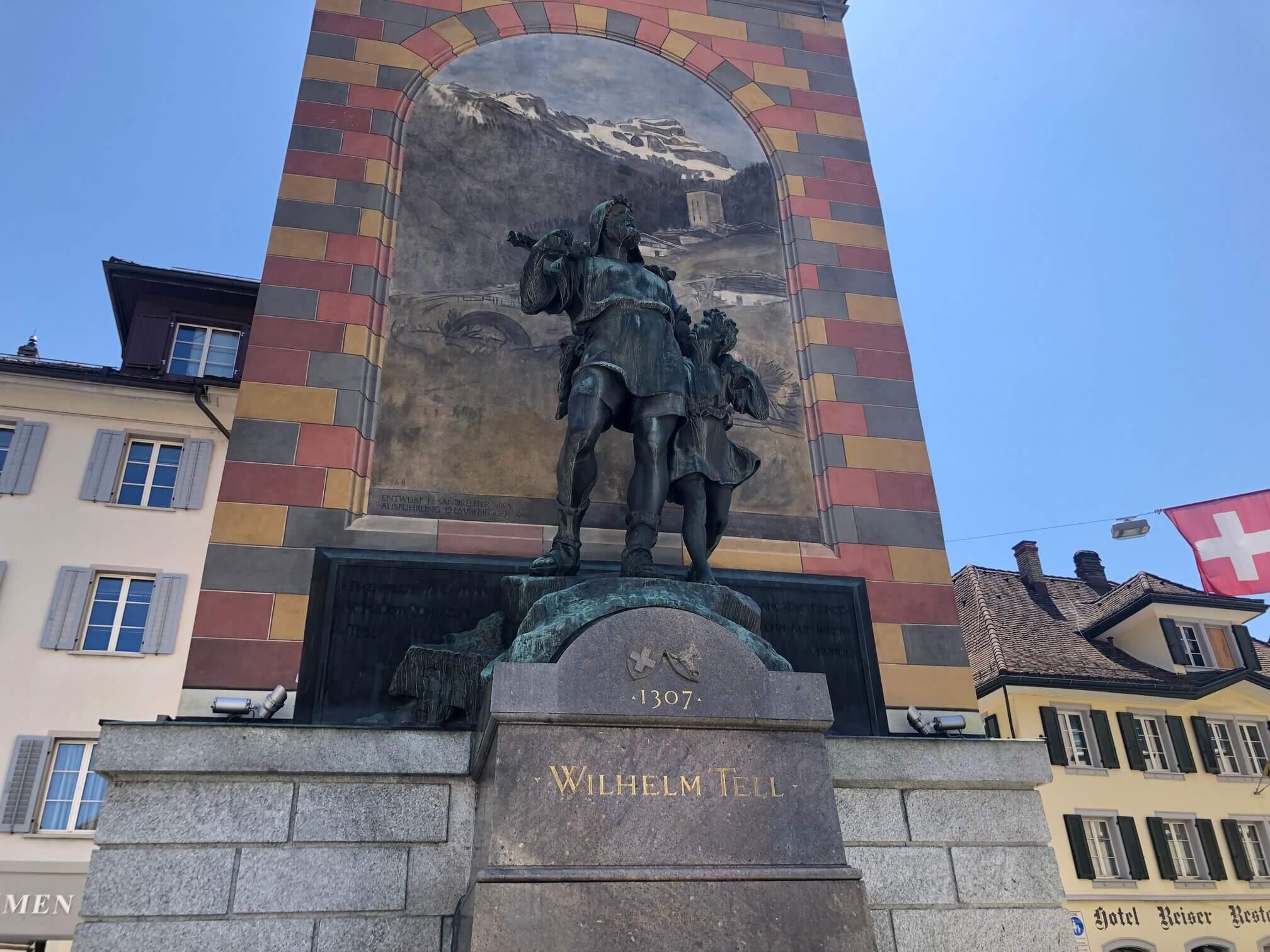 There’s not much in the way of tourism in Altdorf, but there is an interesting history to its William Tell Monument. According to Swiss legend, Tell is the spiritual embodiment of the Swiss’ desire for freedom from the Hapsburg Empire and liberty as an independent people. The monument clearly states 1307 as the founding date of Switzerland whereas it is now widely accepted as 1291, as written on the Federal Charter.