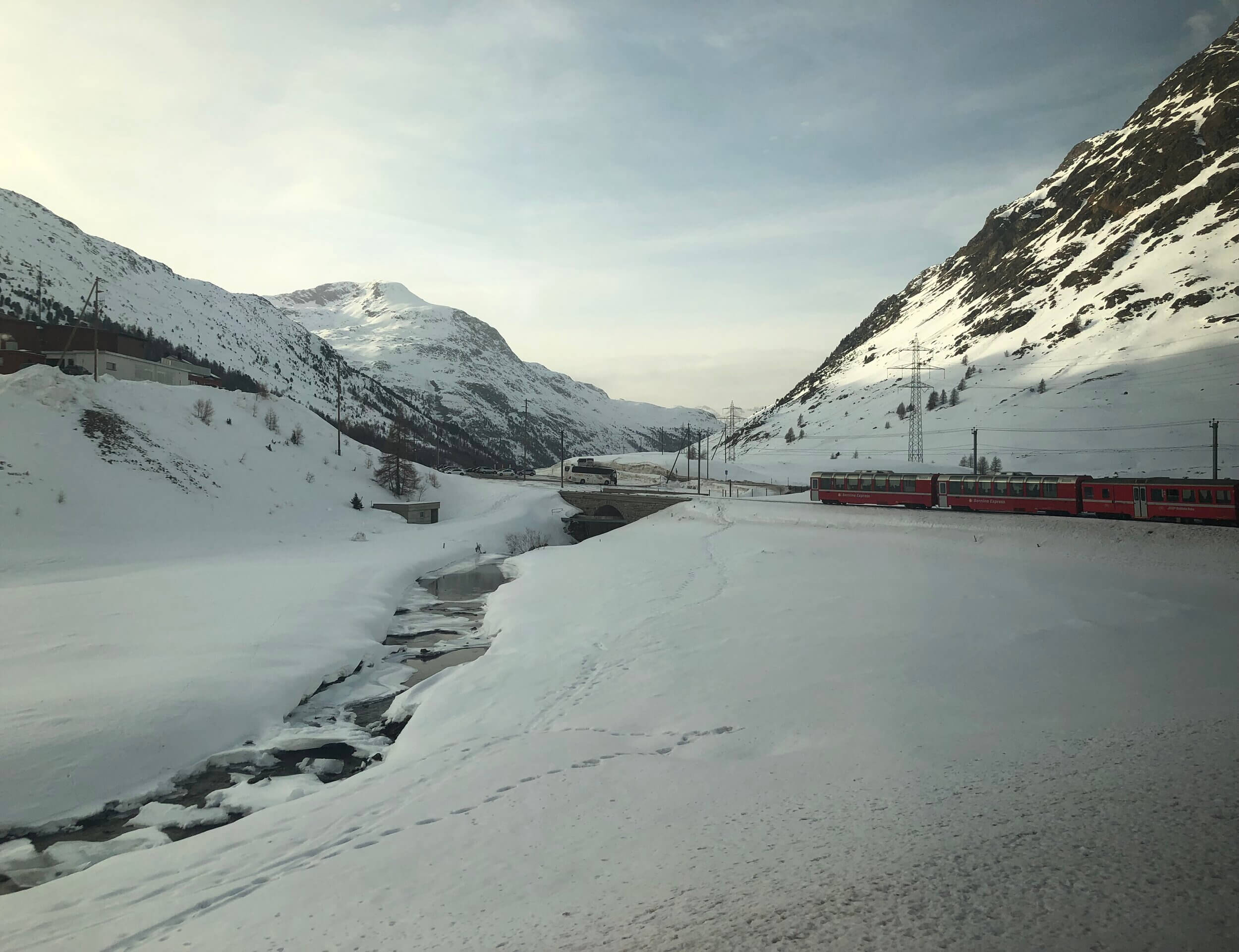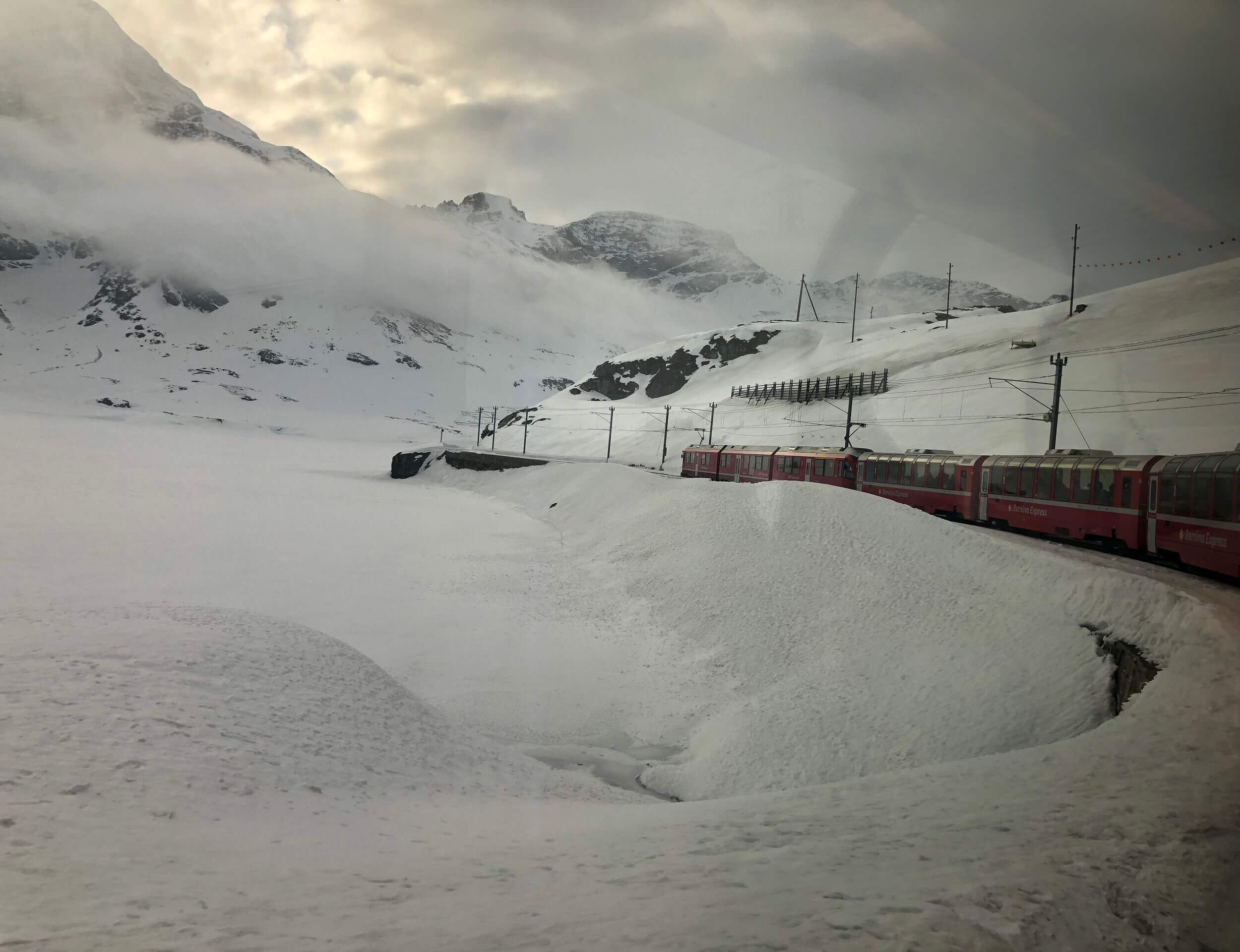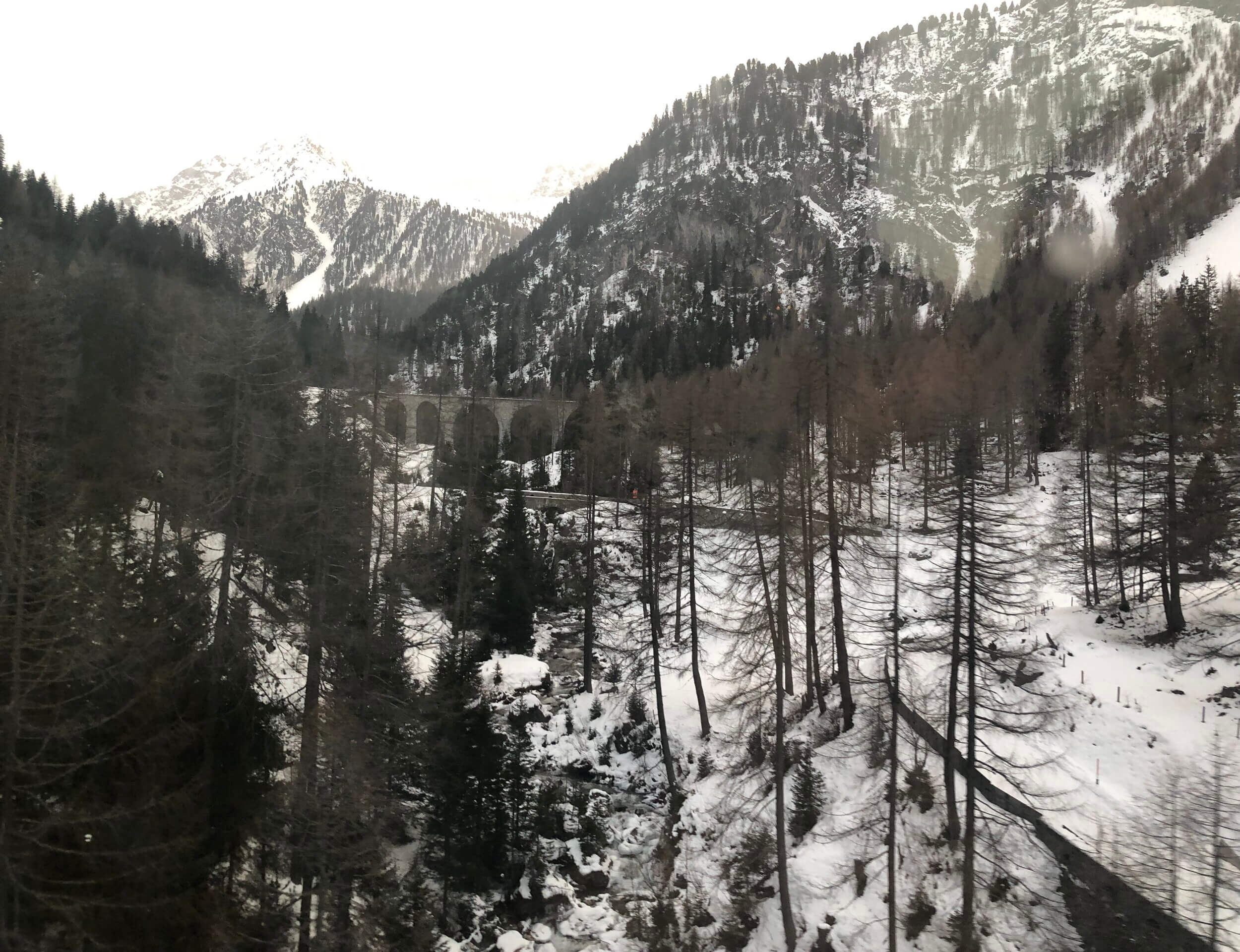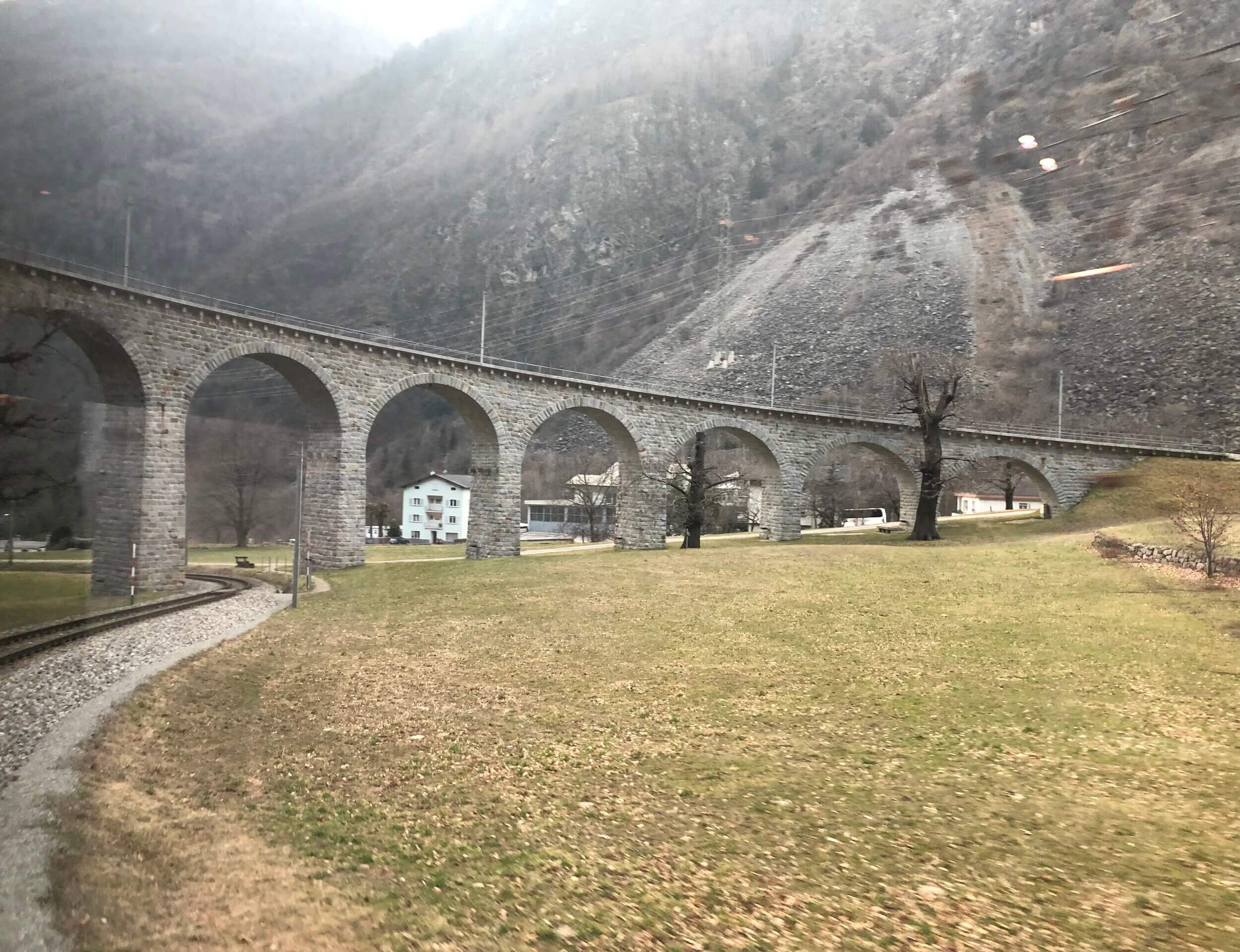 Engineers took advantage of the train’s small 45 meter turning radius at the loop on the Brusio Circular Viaduct. It is a hotspot for photography fans and many open the windows even in the winter just to get a clear shot. For me, there’s no real need to take professional shots myself, I can always find a drone shot at a better angle on the internet.