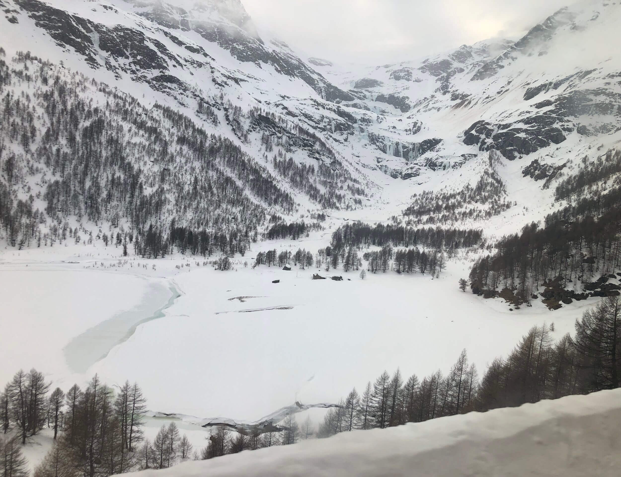 Along the way, passengers are treated to the view of two glaciers and the 4,049 meter high Piz Bernina – the tallest mountain in the eastern Alps. There are two main lakes along the way, the Lago di Poschiavo mirrors the mountains in calm weather and a walk along the lake between the stations Miralago and La Prese is highly recommended. The other lake is Lago Bianco, known during winter to be completely frozen with a thick blanket of snow over it.