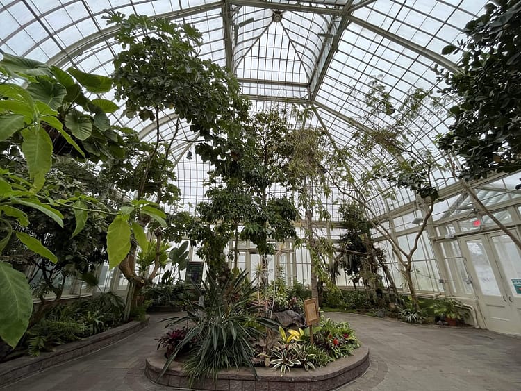 I wanted to do a quick visit to Buffalo just before Christmas, but the border closed before I could go. So, I got a refund for my ticket to the Buffalo Botanical Gardens and credit for Frank Lloyd Wright’s Martin House tour. The gardens open in the morning and I think that’s the best time to go. Start the day with nature indoors. It rained when I was there, so I could be outside without being outside.
