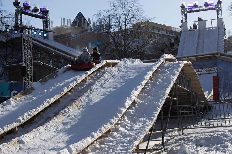 If you’re already from a cold-climate city, you can miss the slide. Montreal’s sledding tracks are much longer and don’t cost anything to use. If you’ve grown up playing hockey, you can also skip the precision hockey game. But one thing you absolutely cannot miss is the ice palace.