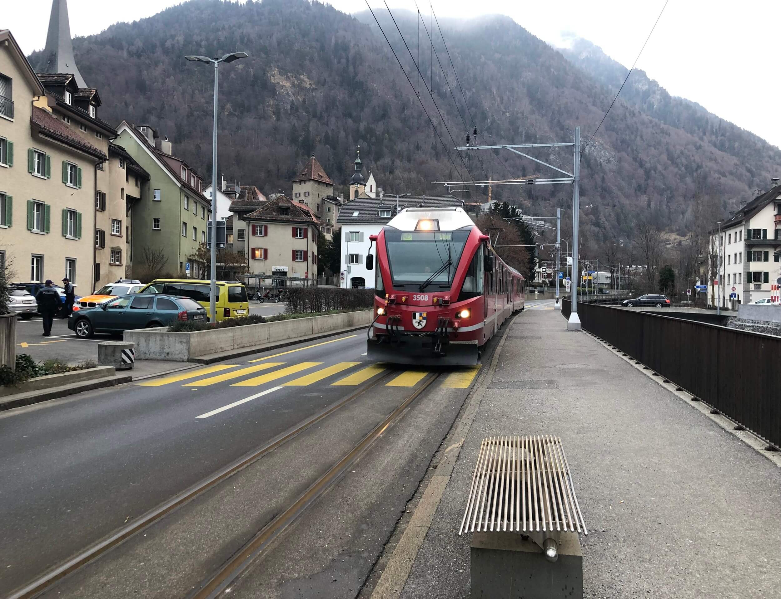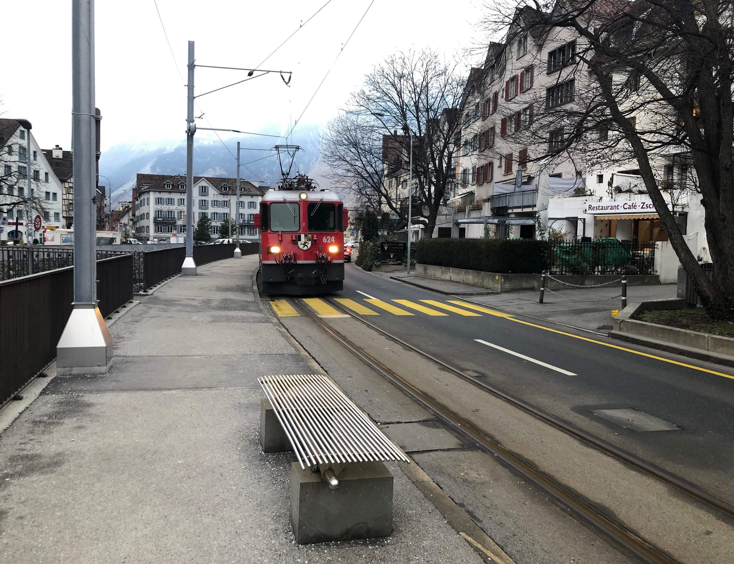 Finally, there’s the train that you can catch at a bus stop. It actually goes all the way from Chur to Arosa via the old town so it travels on street level with vehicular traffic. I found it quite a but of fun to flag a train on the street and to hear it blow its whistle at unsuspecting drivers entering a shared roundabout.