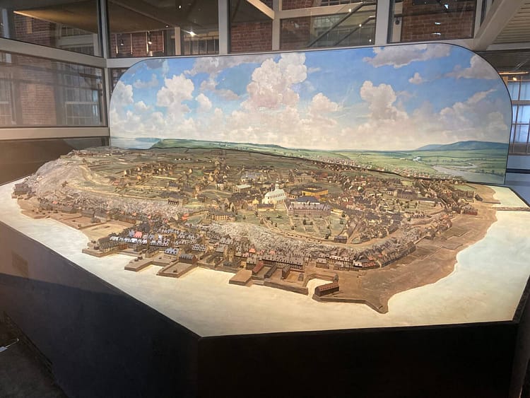 Other buildings in Artillery Park include the gun carriage warehouse where artillery pieces are stored and the officers’ quarters that can only be viewed with a guided tour. A long flight of stairs leads visitors up to the top of the walls for breathtaking views of the old town below. It really looks like a miniature!