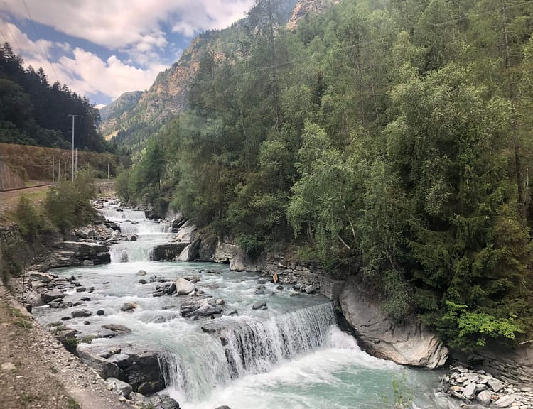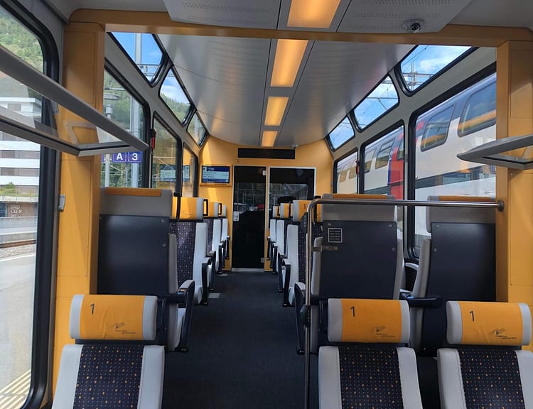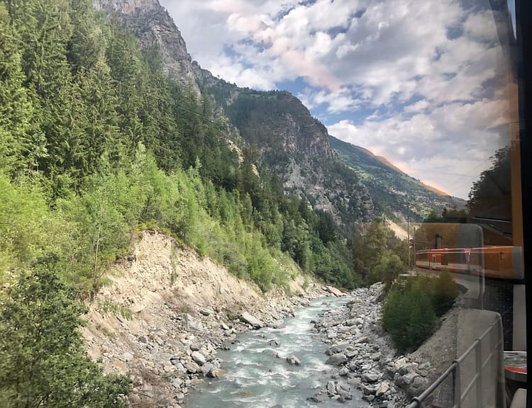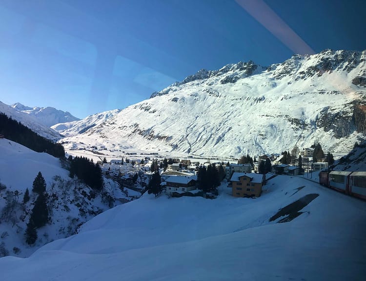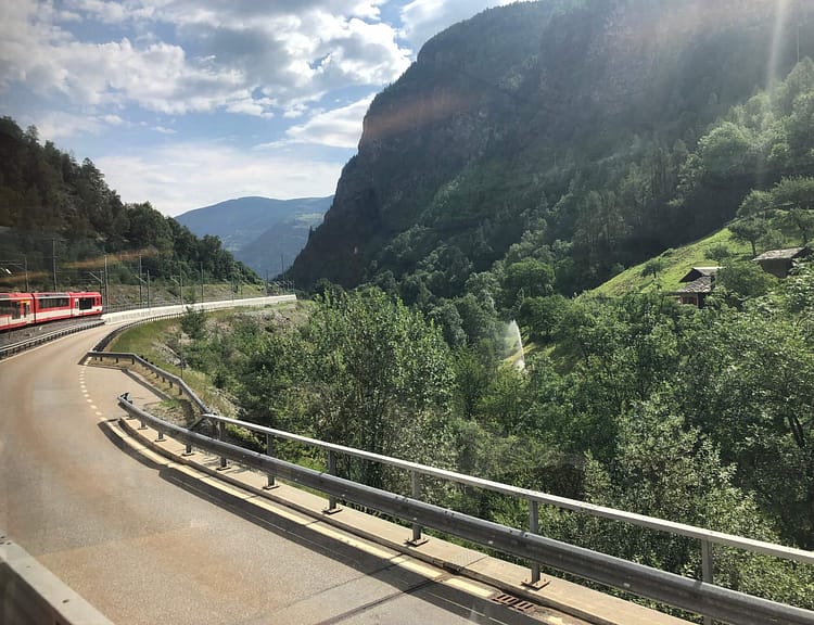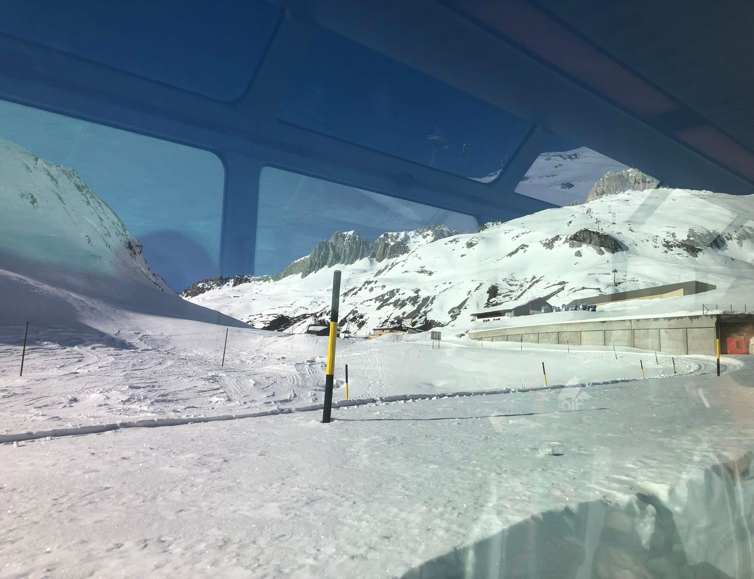 The two highlights of the ride are the Oberalppass and Grengiols. At the Oberalppass, the train passes its highest section of track at over 2000m above sea level, where the road is usually close to cars for winter you can see people cross-country skiing on it. At Grengiols, the train goes through a tunnel loop to accommodate the sudden change in elevation and it makes your ears pop!