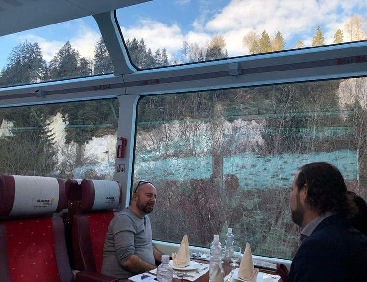 Is Excellence Class worth it? I really don’t know, I haven’t been on it. The CHF420 reservation fee (in addition to the actual ticket price) costs a lot more than the CHF33 reservation fee for “regular” first class. I have seen that the food is gourmet in Excellence Class, but the four-course menu in first class is actually quite good for railway gastronomy standards. Hiking and cross-country skiing is hard work, so the biggest logistical problem you’ll have to solve on the Glacier Express is whether you’d like your chocolate cake or your cheese platter first while you enjoy the same view.