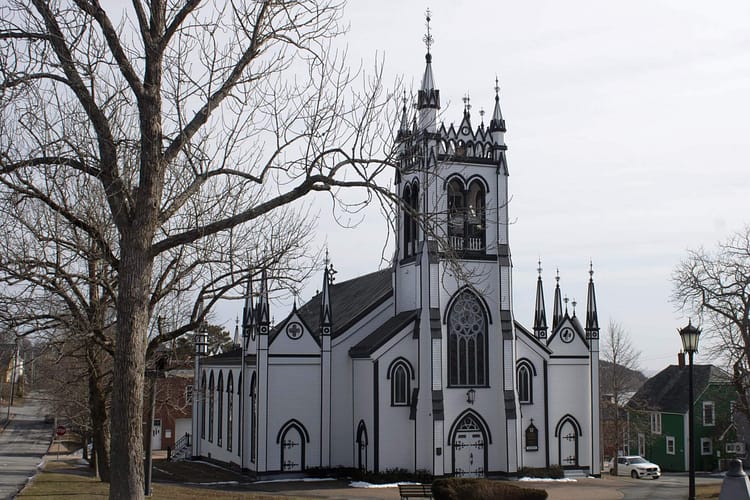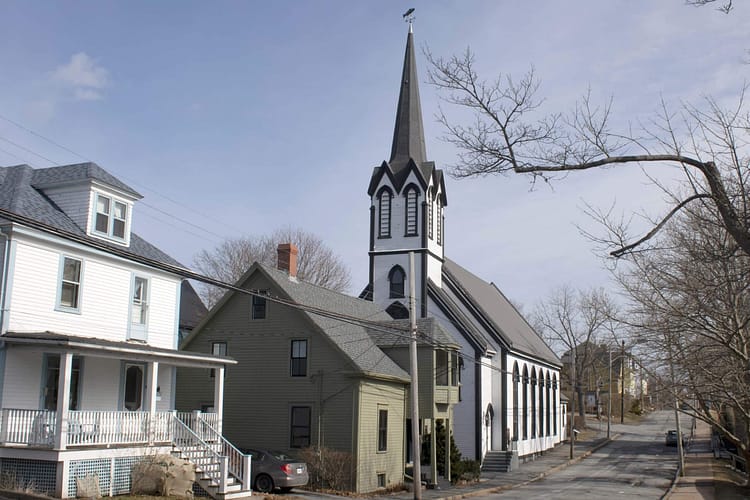 St. John’s Anglican Church was the second Anglican Church in Canada, the first was St. Paul’s in Halifax. It was built between 1754 and 1763 in Meeting House style with oak frames from King’s Chapel in Boston. The current Carpenter’s Gothic church was built in 1870 to replace the old one. The original church bell from 1814 was imported from London and rang until 2001, when a fire destroyed the church tower, damaging the bell.