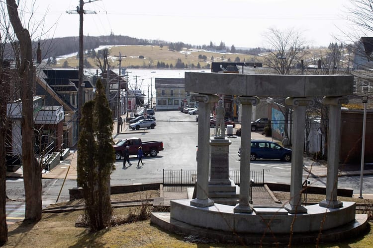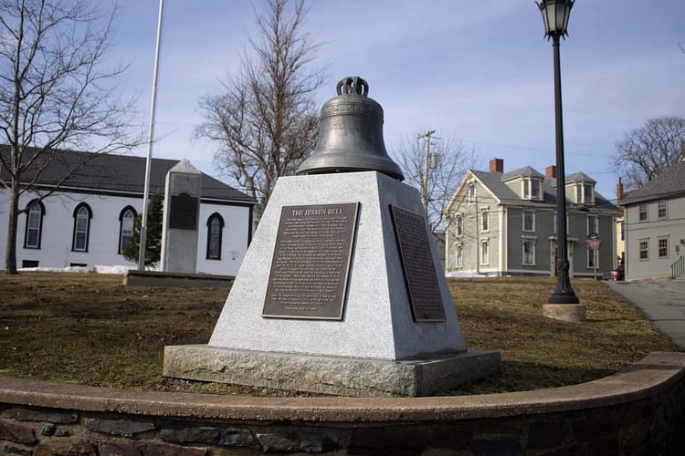 The bell is displayed in the park in front of the church. Also facing the park is the Heinrich Koch House, one of the oldest buildings in Lunenburg built in the 1750s. Heinrich and his father Anton opened the first sawmill in town to afford to build the timber house.