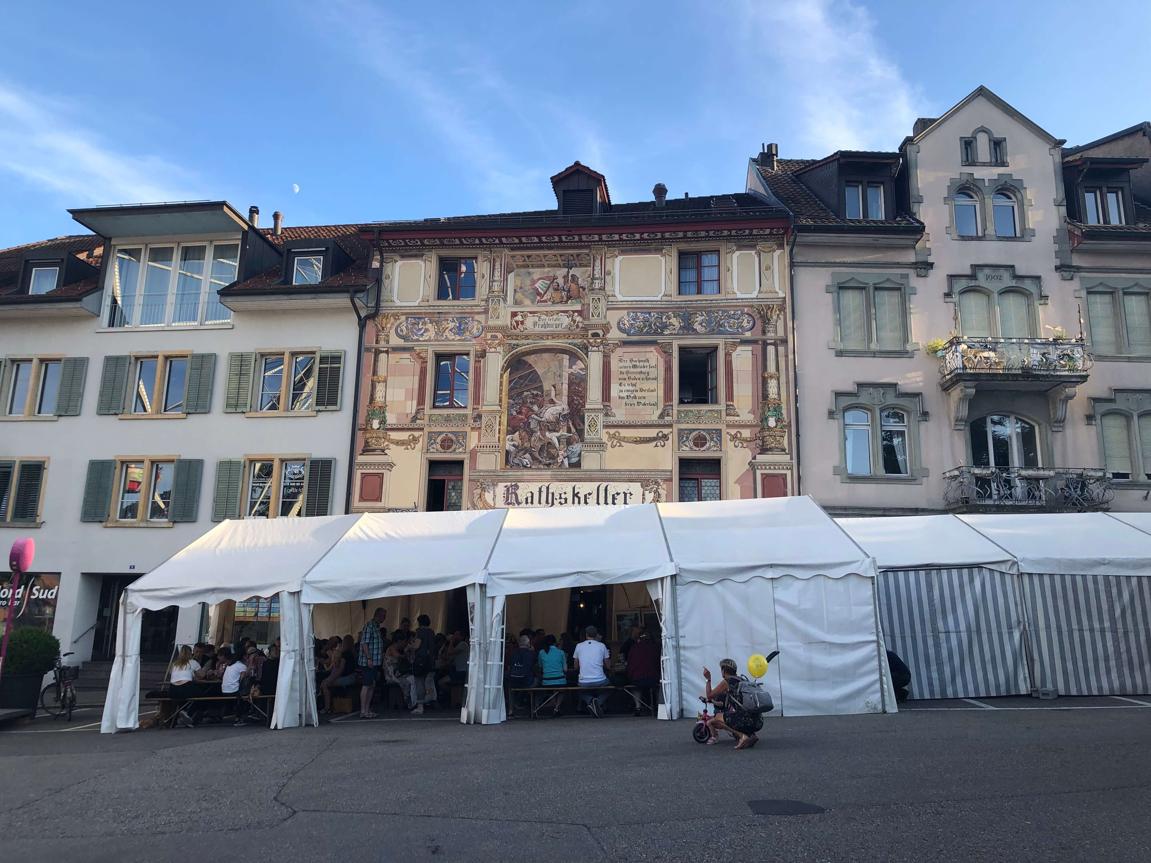 In the centre of the historic old town is the Oltener Stadtturm, a tall clock tower that chimes every 15 minutes, including at night. On the edge of the old town is a colourful local restaurant called the Rathskeller Olten. It even has lots of historic weapons hung on the wall!