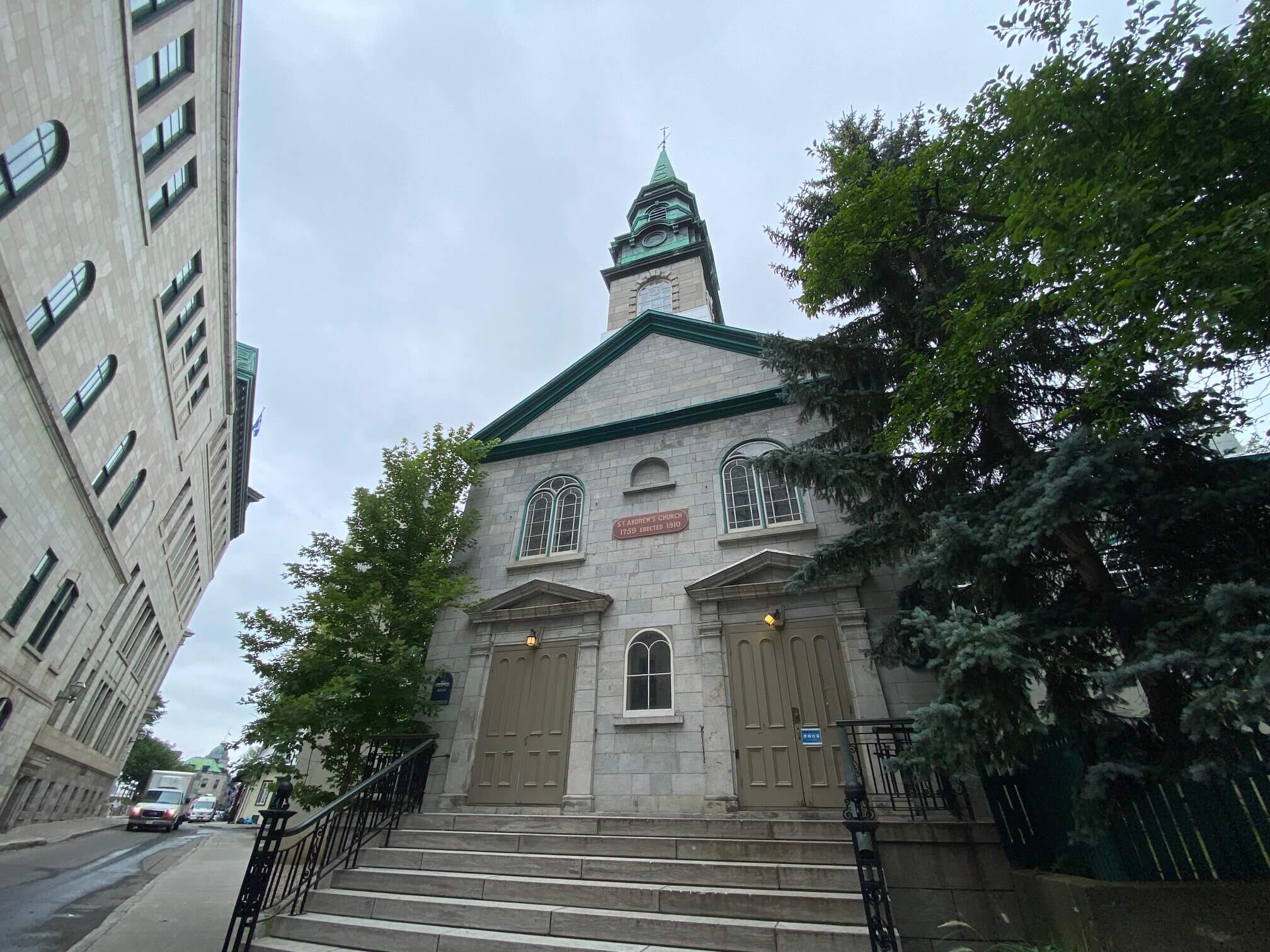 The Morrin Centre is at the heart of the old English-speaking community in the city. The Presbyterian St. Andrew’s Church and the Literary and Historical Society of Quebec are both in the area. The historical society that occupied Morrin Centre’s building helped eventually form the National Archives and the Historic Sites and Monuments Board that provided the information in this sentence.