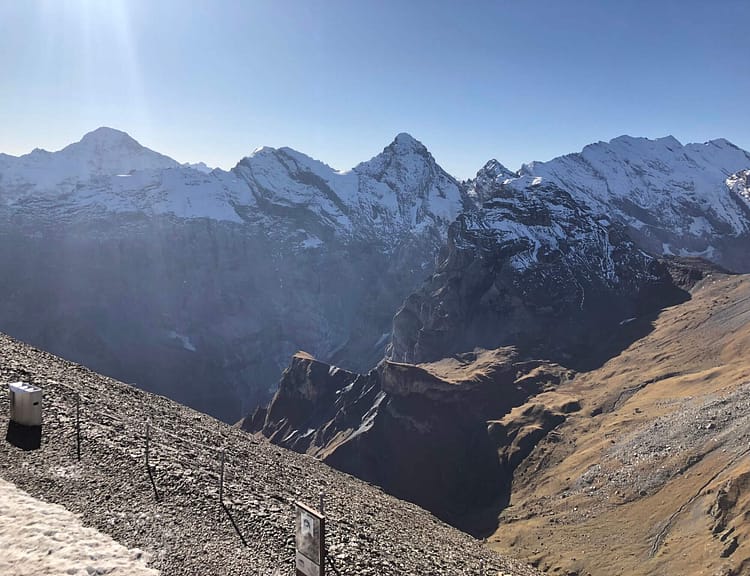 To get up to the summit, you can either hike about five hours or take four 8-minute cable car rides from Stechelberg. I’d highly recommend you buy the Fast Lane pass for CHF5 online to guarantee ascent at the desired time in the morning because it can get quite crowded in peak seasons and the cable cars only come by once every half-hour.