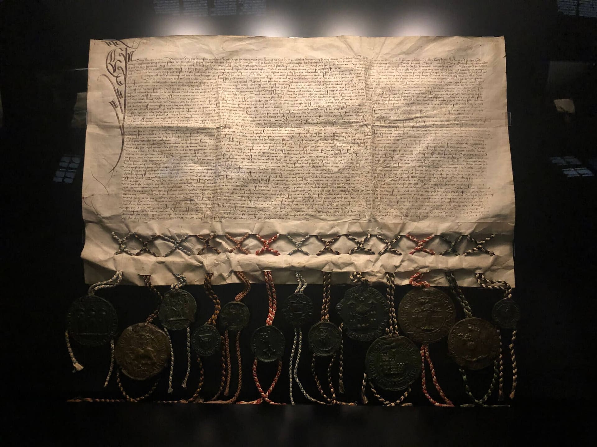 In addition to all the charters, the museum also has exhibits on the religious divides of 1586 with the alliance of the Catholic cantons and a brief mention of the Sonderbund war of 1847 between the Reformed and Catholic cantons. Since its renovation at the turn of the millennium, there is also a flag exhibition and an explanation of the origins of the Swiss military standard that later became the national flag.
