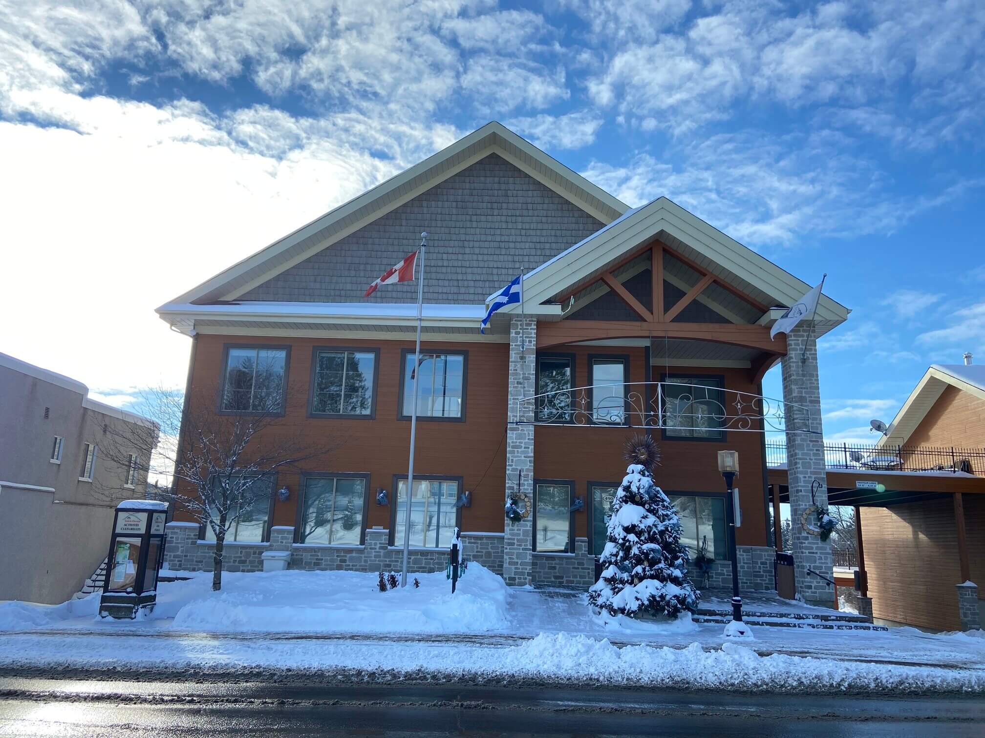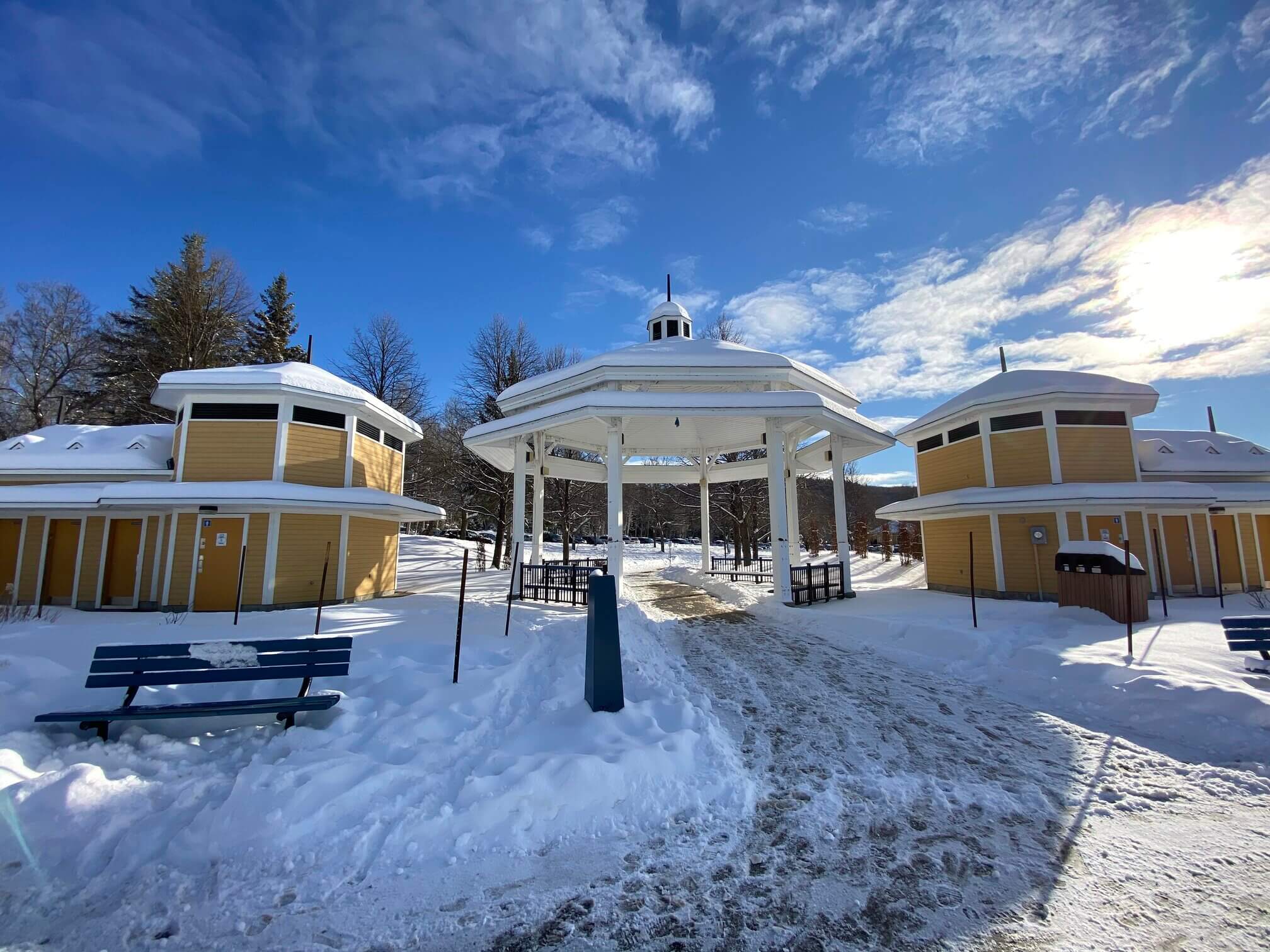 St. Donat town hall Parc des Pionniers Lac Archambault frozen over