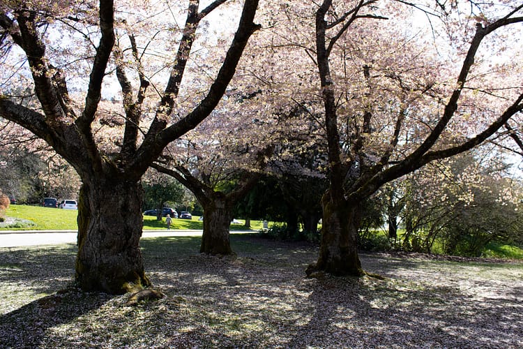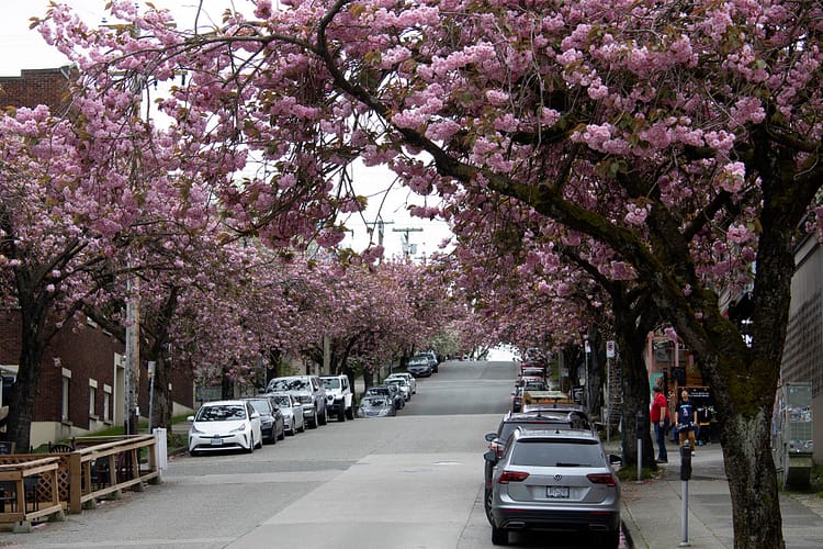 Every April, Vancouver’s streets bloom with cherry blossoms that came from Japan as a gift in honour of Japanese Canadians who joined the Canadian army in the First World War. The city has turned this natural phenomenon into an annual festival to cash in on its cultural ties with the local Japanese community. Flights, hotels and rental cars are more expensive during the festival, so I decided to visit on the weekend after the festival to score cheap flights and gamble that I’d still be able to see the pink trees.