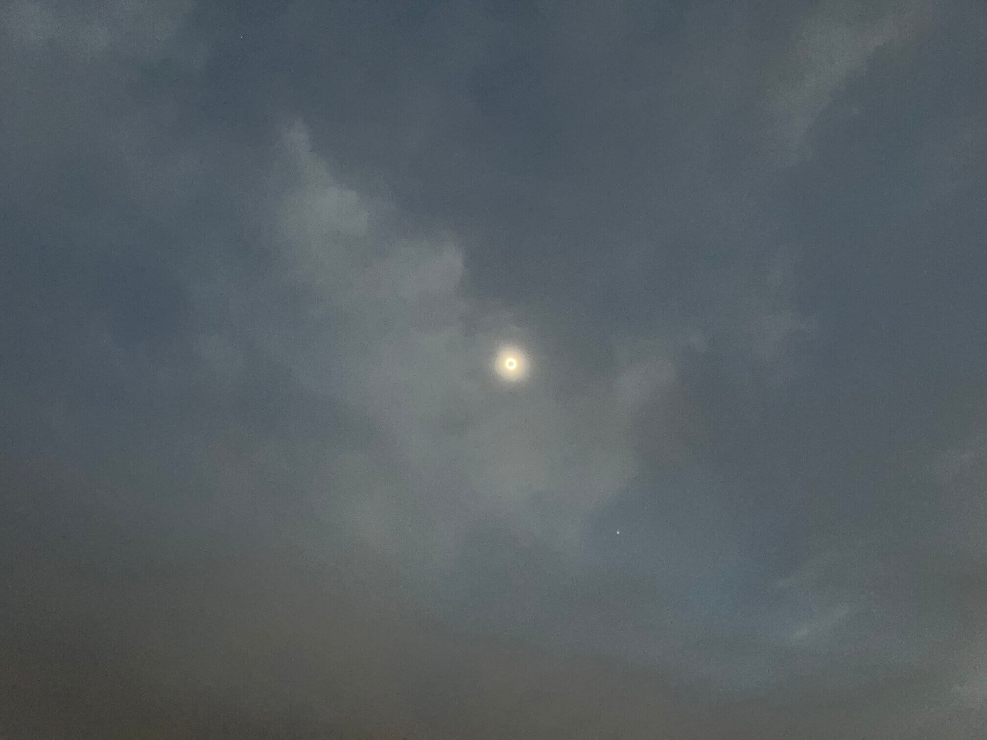 At the darkest moment, it looked like the sun had set for an instant and then reappeared shortly after. The birds crowed and flocked back to their nests, people jumped into the lake, and a ring of light was all that was left of the sun.