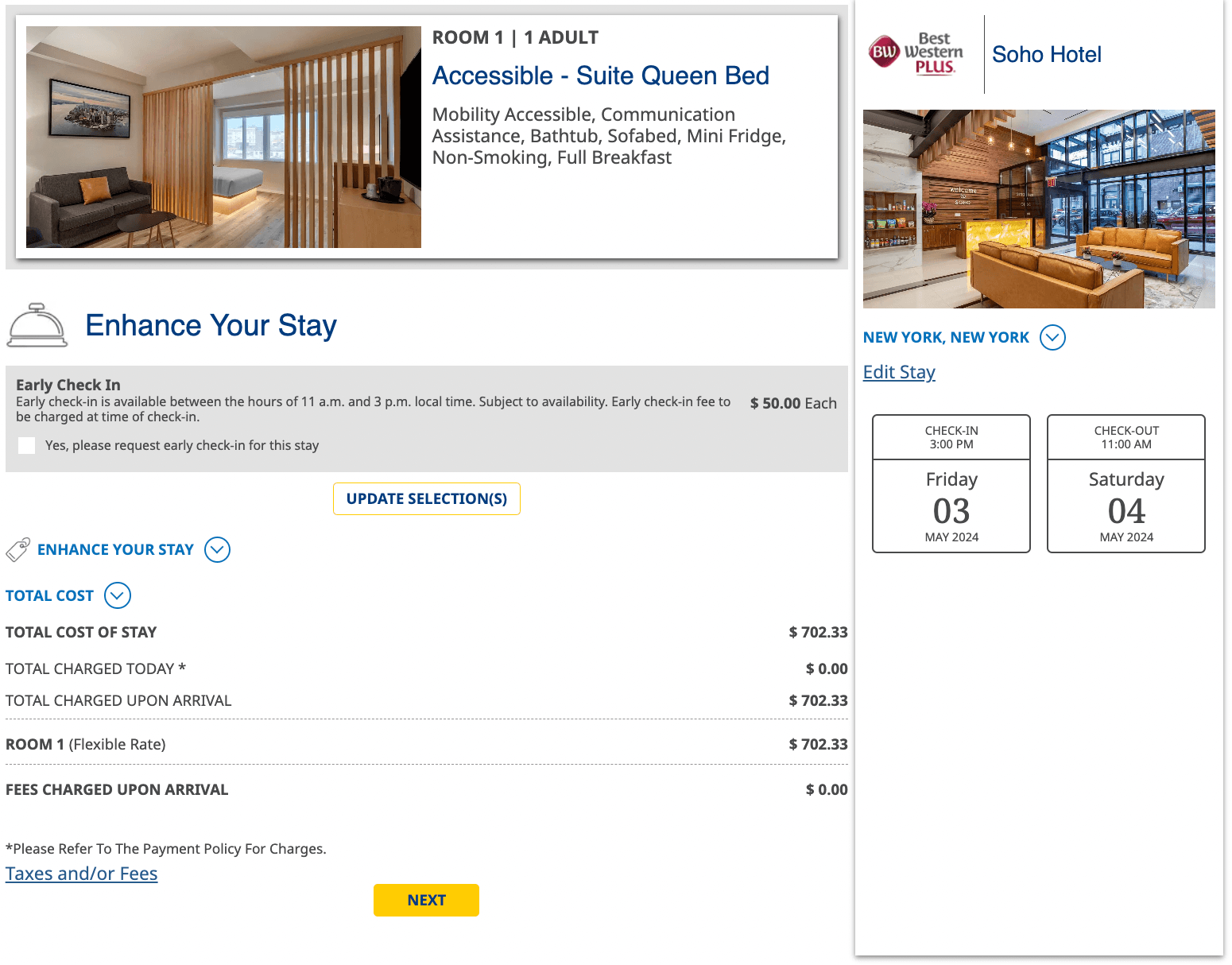 I only had four months to use the voucher, so I looked for an upcoming trip of mine that could benefit from this free night. I had a trip planned to Alaska and Yukon, but neither of those locations had available rooms at Best Western properties I stayed in. The chain’s hotel locations didn’t work for my Illinois, Texas, Germany, or Luxembourg trips either. But I did have a trip to New York City coming up in May.