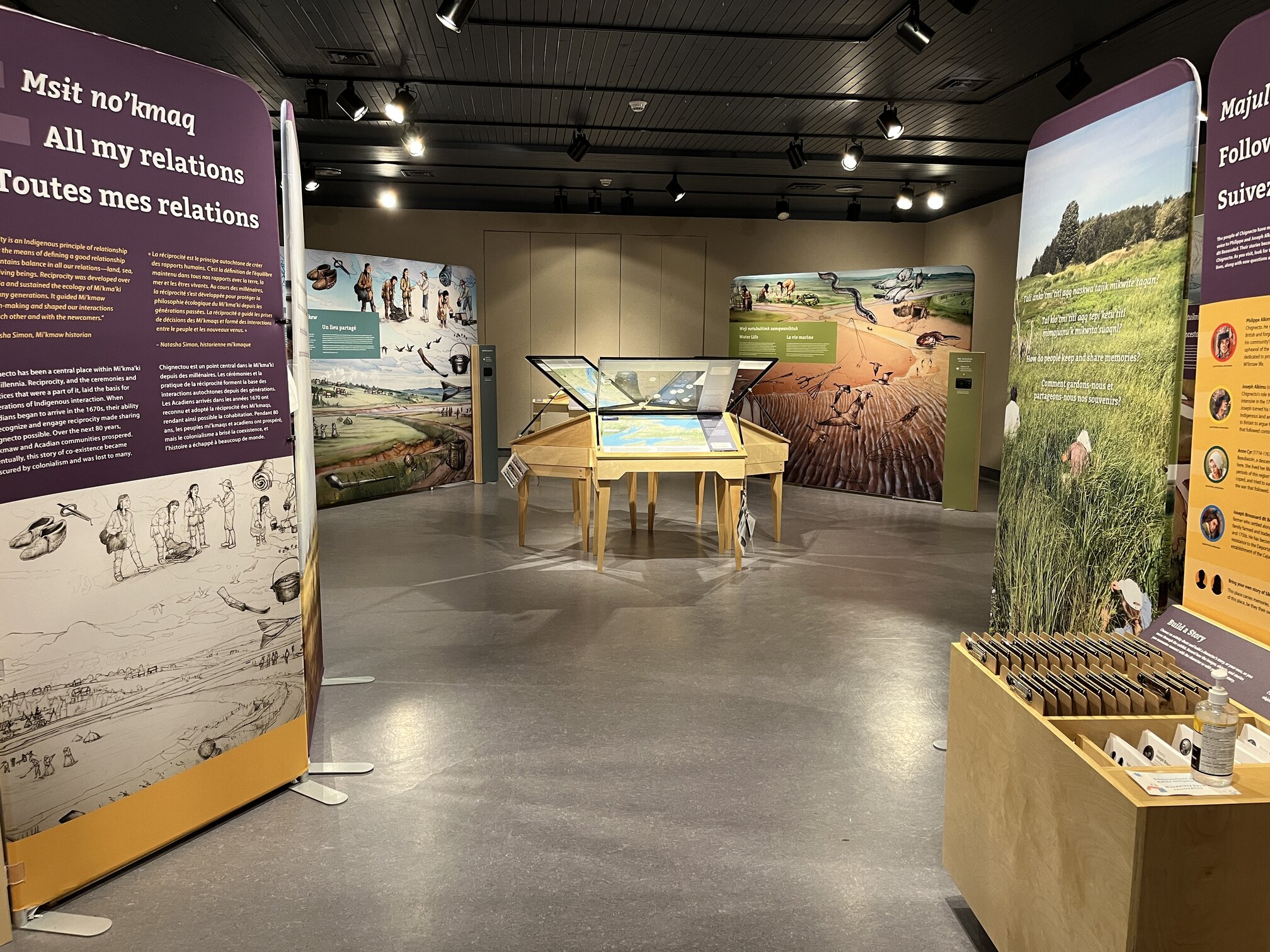 The experience is largely dependent on reading information packaged on interpretive signs with a few items on display. It’s more a place for Acadian to retrace how their forefathers lived than for outsiders to understand more about Acadian. I liked their approach of recreating artifacts like beads, shells, inscribed stone, and tools for visitors to touch, it also provides an accessible experience for the visually impaired.