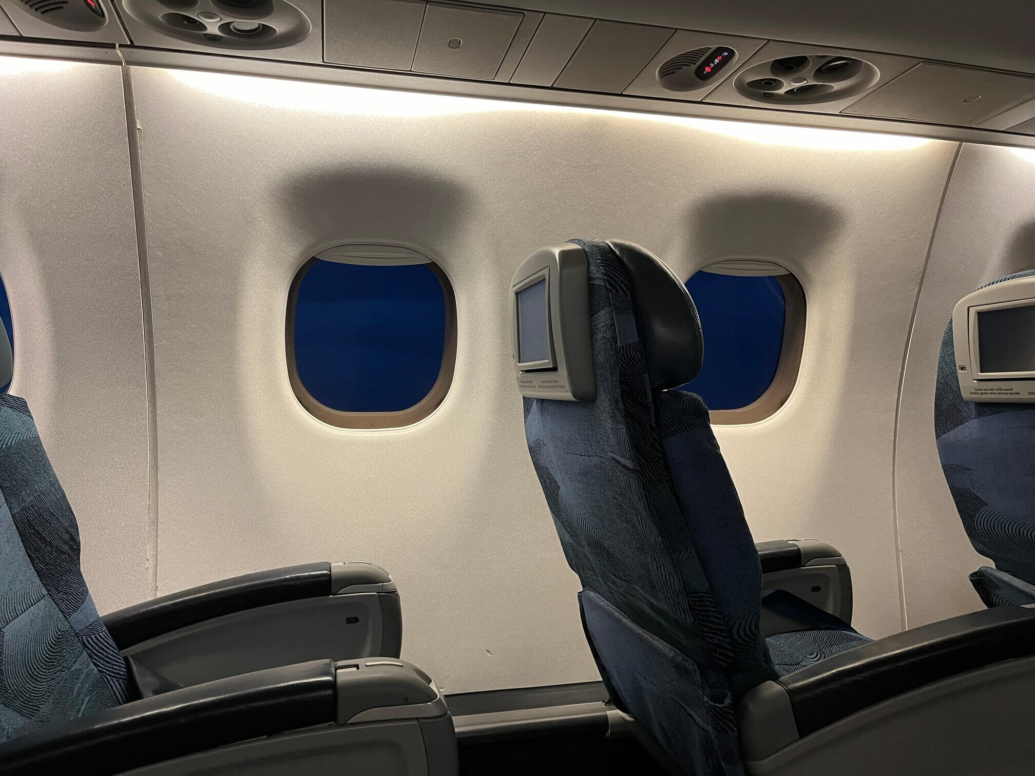 The small, dated screen was very slow to respond and takes experience to work. It’s fine once a movie starts playing and the matte screen helps prevent glare, but it’s a pain to skip ads, play or pause for meal service, and navigate between menus.