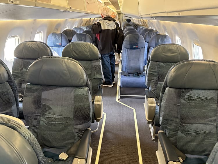 Just like the CRJ900, the E175 has 1-2 seating, perfect for solo travellers and they’re wider than in the CRJ. Although it has Air Canada’s old blue seats, but the seats don’t get a lot of use on regional flights, so they didn’t feel tired. The large windows let in plenty of light and are best aligned in the first two rows.