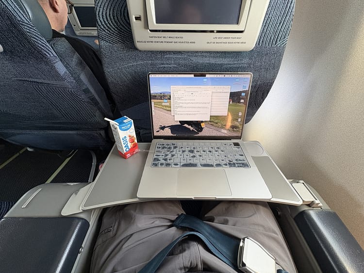 The seat-back entertainment system had been decommissioned and replaced with free Wi-Fi for all passengers. Air Canada’s full movie, music and TV show selection was available on personal devices via the Wi-Fi. Unfortunately, the internet connection on my flight didn’t work.