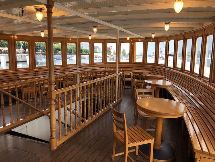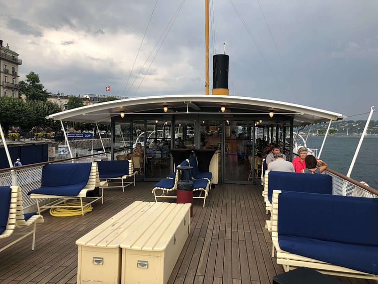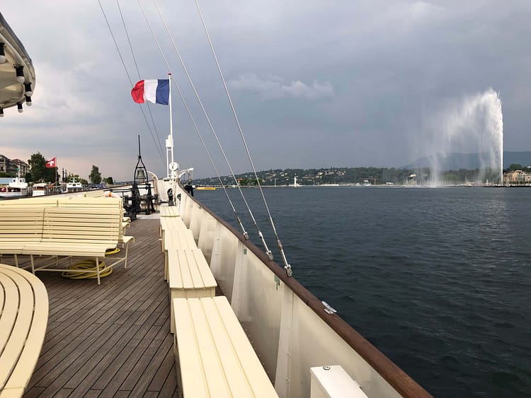 I don’t make impulsive decisions very often, but when I went online and saw an offer for a boat ride on Lac Léman with a dinner for a very reasonable price I just could not resist. At first, I arrived at the wrong ship on the wrong pier, but when Google Maps finally showed me the right pier to board I saw the most beautiful lake ship ever.