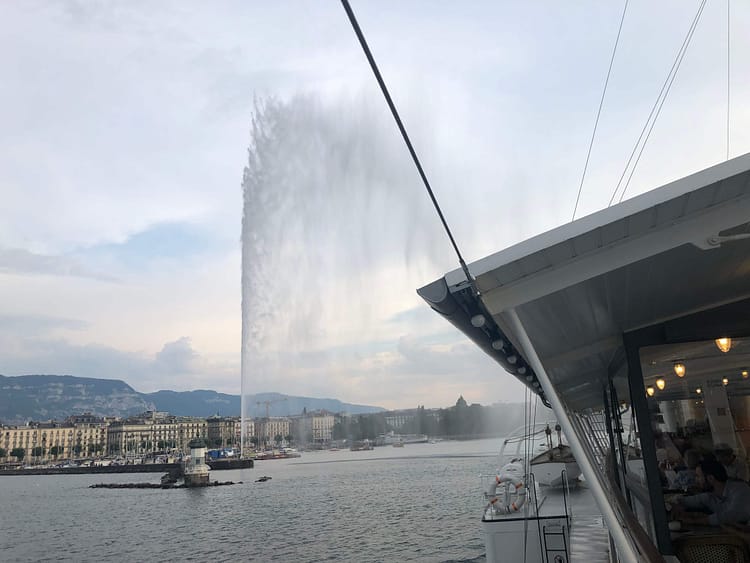 When returning to Geneva, the horn doesn’t sound to warn of the ship coming into port, it warns the smooching couples at the aft terrace to get inside or be completely soaked by the Jet d’Eau! This moment is unique where the slowest form of transportation in Geneva meets the fastest thing in Geneva, the Je d’Eau sprays water at 200km/h. We were so lucky that the wind favored the direction of the ship as an on-lake shower was definitely the best free dessert after a filling meal.