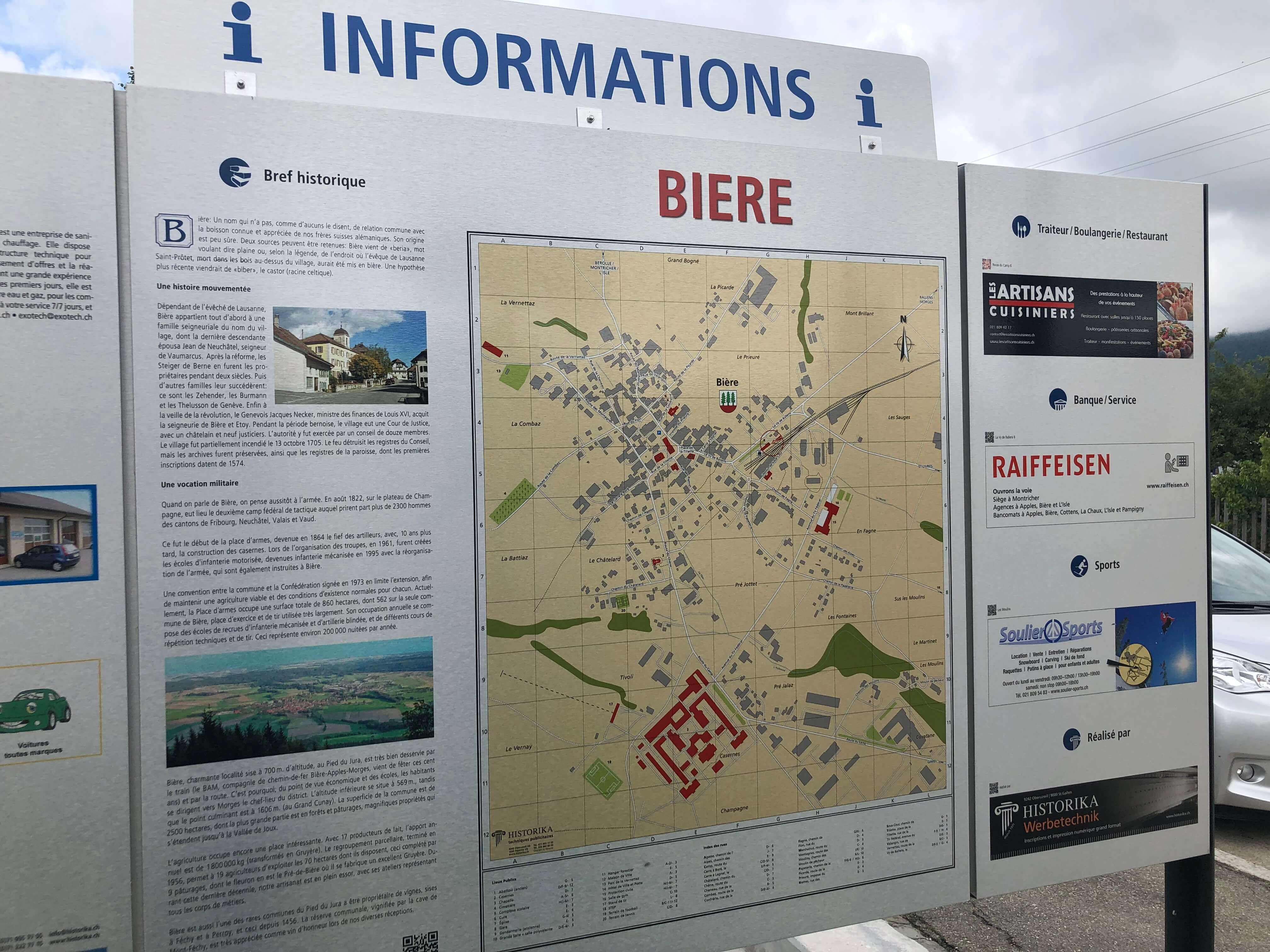 The town consists of two parish churches, one supermarket, a town hall, a railway terminus, and a huge military base. The military base is actually larger than the town, it is so important that a bilingual leaflet about the site has been created to introduce visitors to its main commercial activity. Except you can’t go in.
