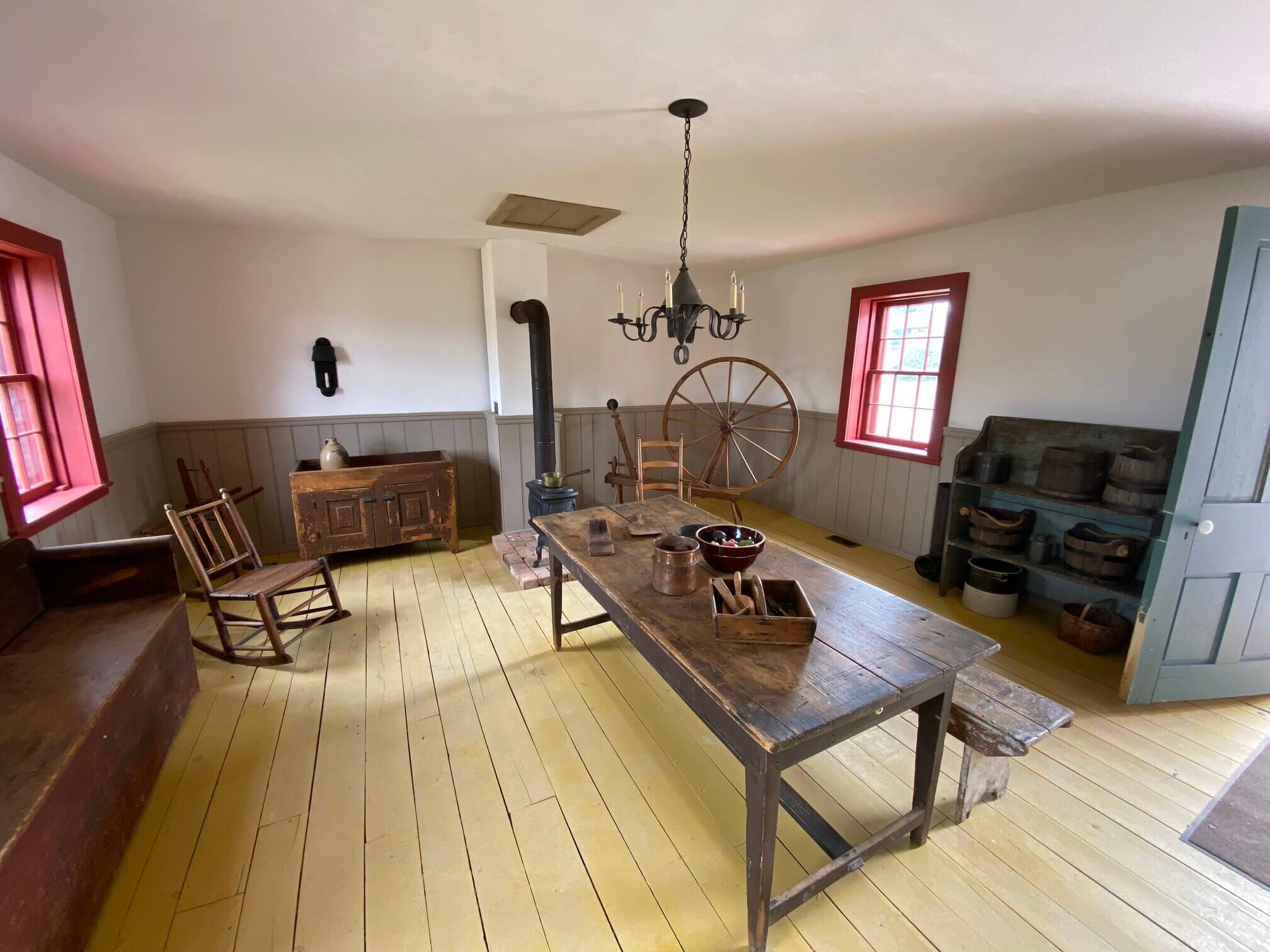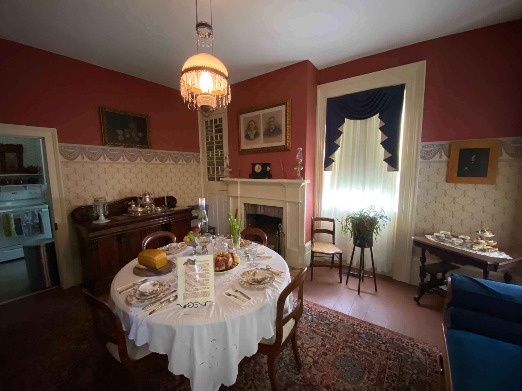Today, the house is a museum of Gregorian revival architecture with 19th century housewares. All the fireplaces and toilets still work, as does the kitchen. Several times a year, a meal can be booked at the house and bread is made in its functional period ovens. The windows were imported from England and the upstairs archive shows maps of the area from when the house was built.