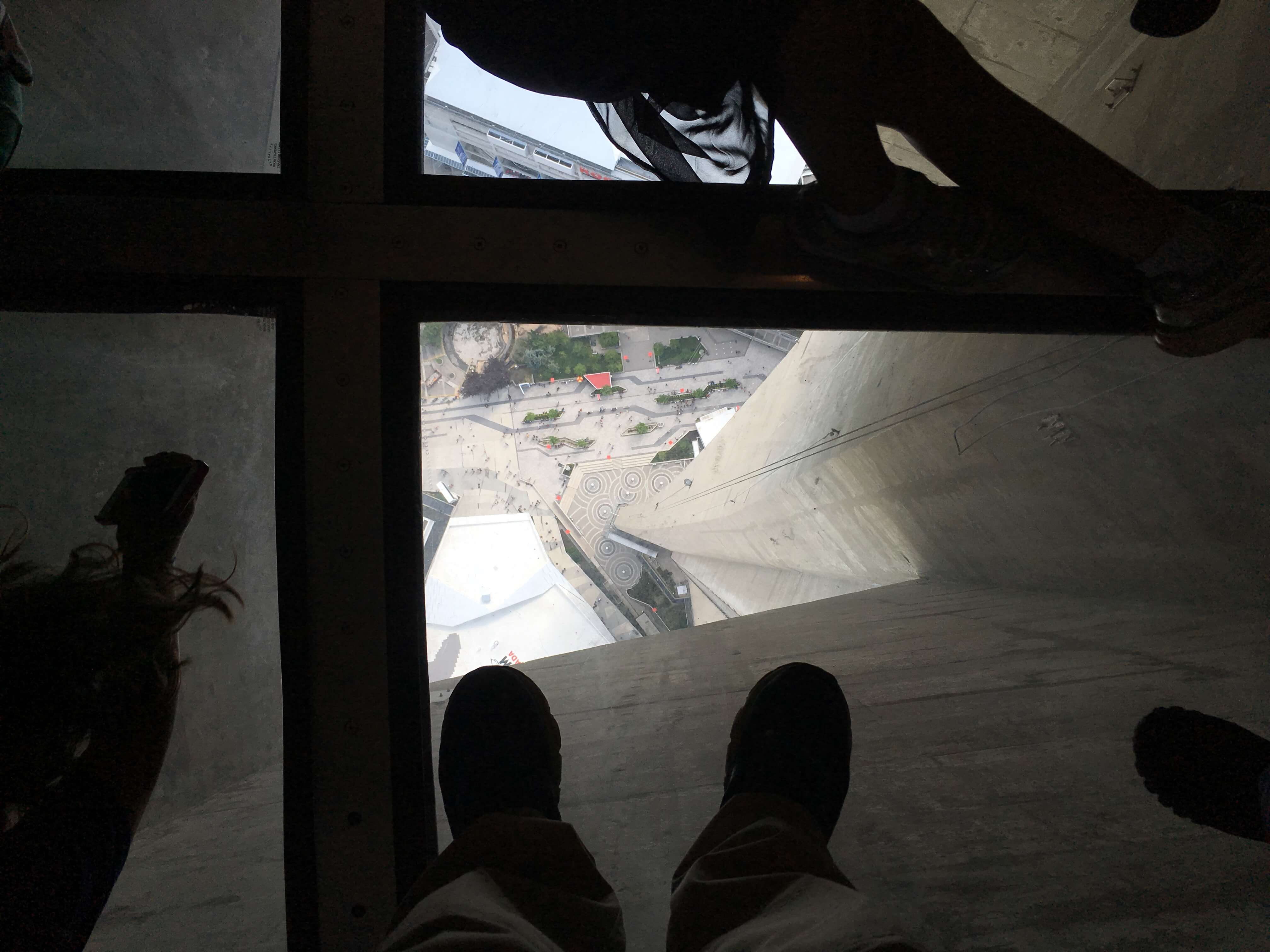 If you’re feeling particularly adventurous, you could do the sky walk outside the main pod attached to the tower only with a steel cable. But if you’d like to stay inside there’s something for you, too. The glass floor is a favorite among tourists and the streets below look like nothing more than a scale model of the city.