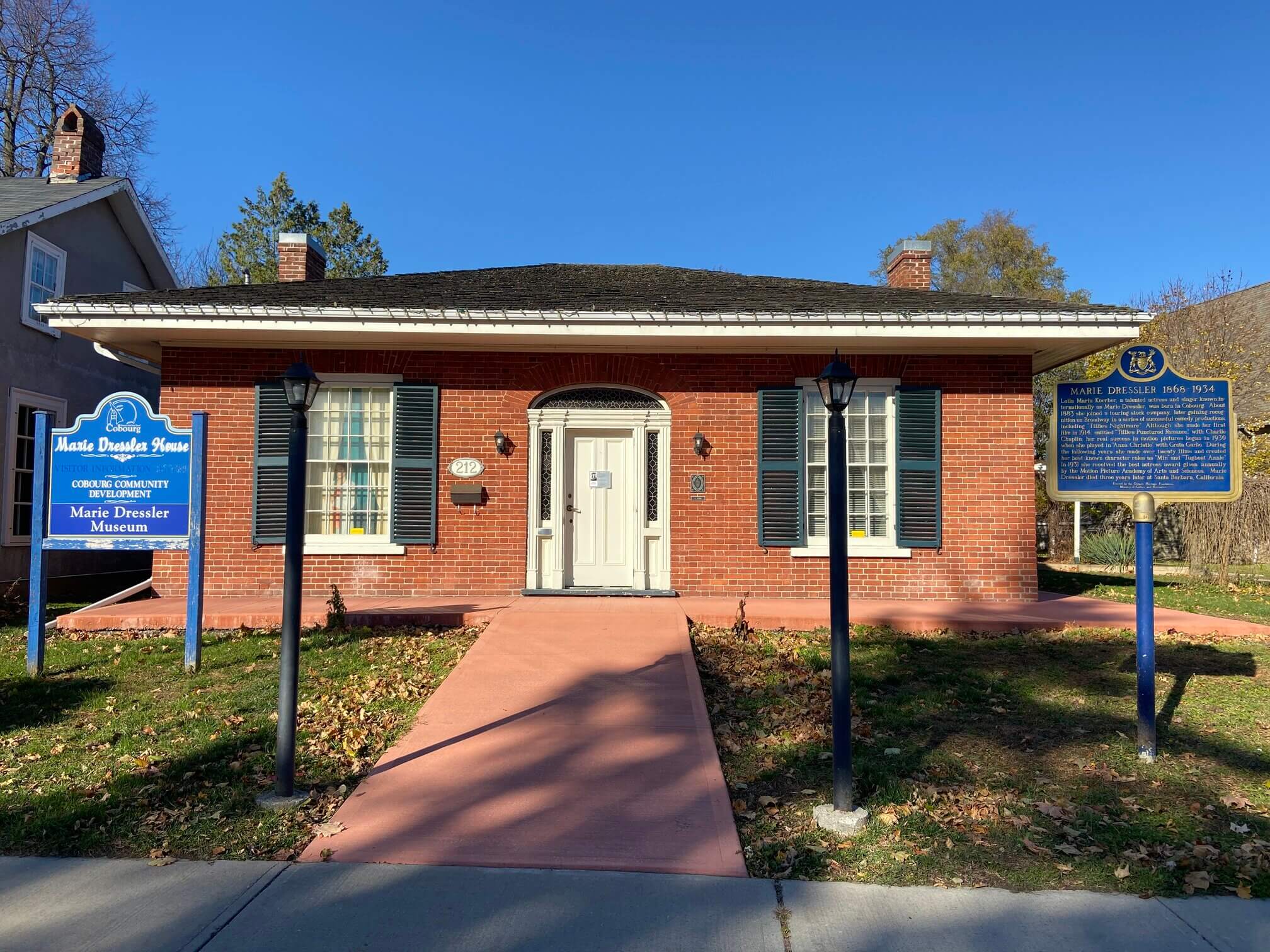 Cobourg is also home to the Marie Dressler House. Born in Cobourg in 1868, Dressler was a well-known actress who started her career on Broadway productions in New York and made her movie debut in 1914. She made over 20 movies until her death in 1934 and won the Oscar for best actress in 1931.