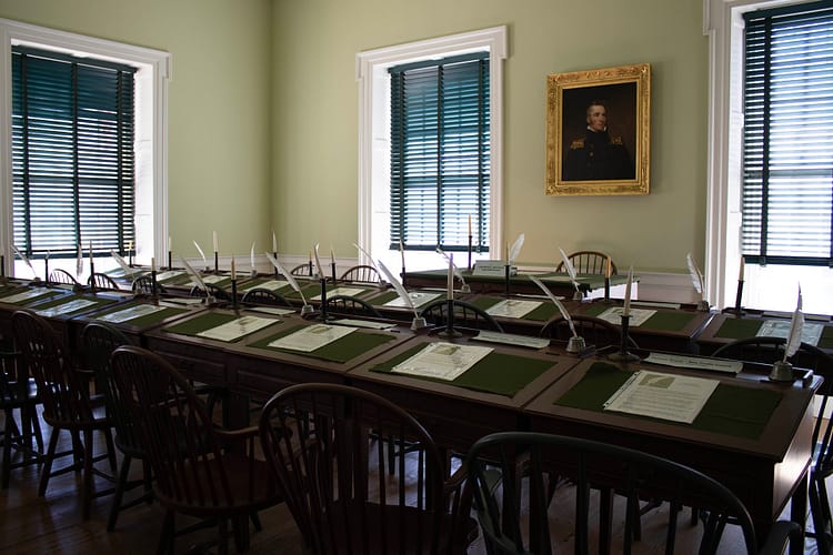 It has expanded several times throughout the course of its use and then restored twice since 1976 to return it to its original appearance. Its location on the Green gave it a significant role in the town’s civic life. You can visit the old senate chamber and the old court room.