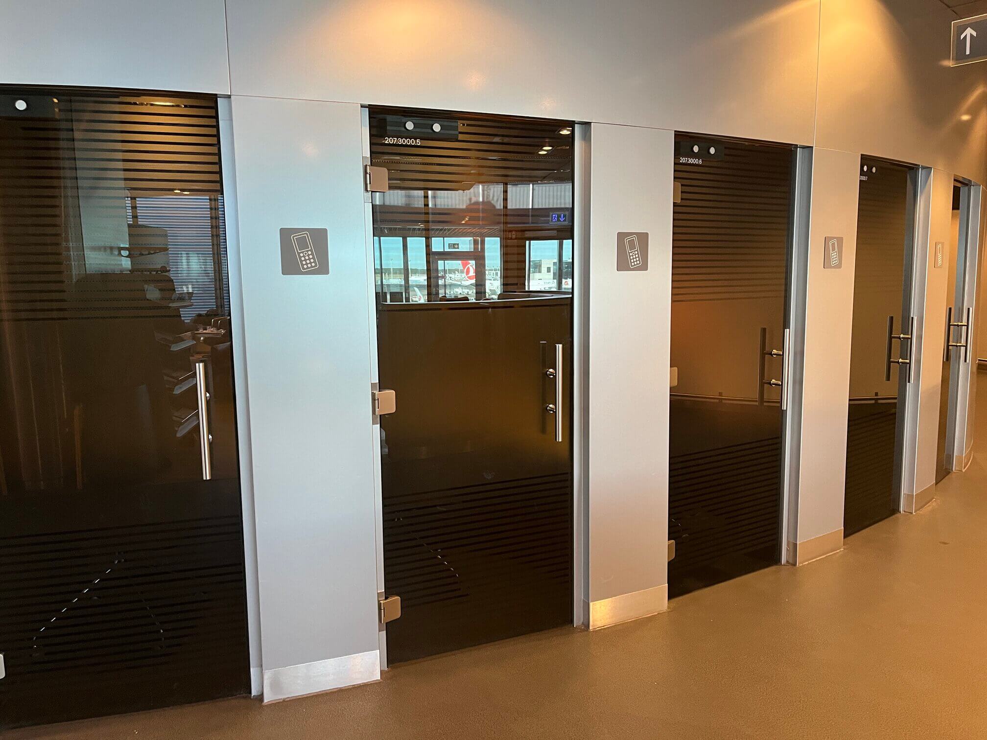 The business lounge east is near the twenties gates in concourse B. It is its own circular nodule on the top of the terminal with views on three sides. There is a sleeping area and soundproof phone rooms on one side and a buffet and self-serve bar on the other side.