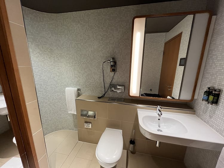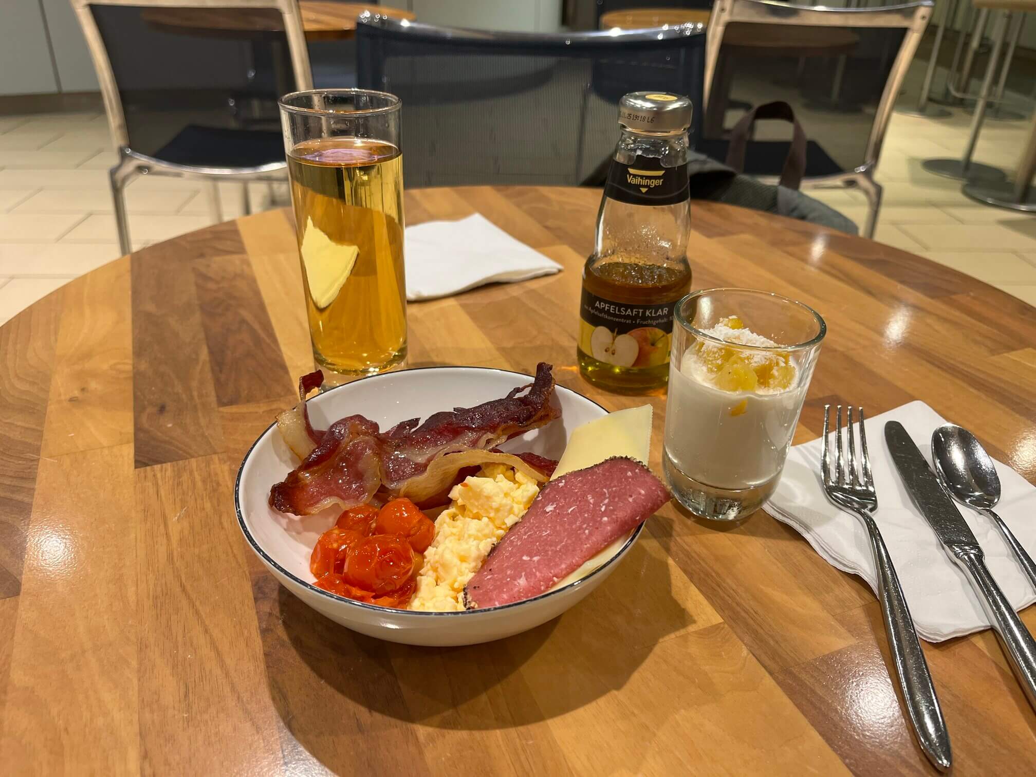 I had a 10-hour layover in Frankfurt, so I got a brunch, showered, and got a bit of work done (i.e. writing this review) before I left refreshed for the day. There are hot and cold breakfast options, and the staff can make you two eggs any style upon request if it’s not too busy.