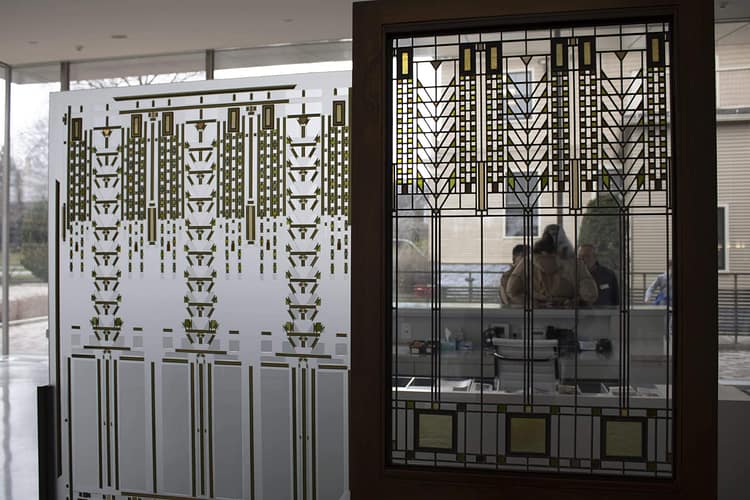 Right angles, crucifix corridors, and controlled views are all a part of Wright’s style, but my favorite feature are the windows. There are nearly 400 windows with 15 different patterns in the Martin House, the most of anything designed by Wright. Each window could contain 750 pieces of glass set in a brass frame taking over 300 man hours to produce just one window.