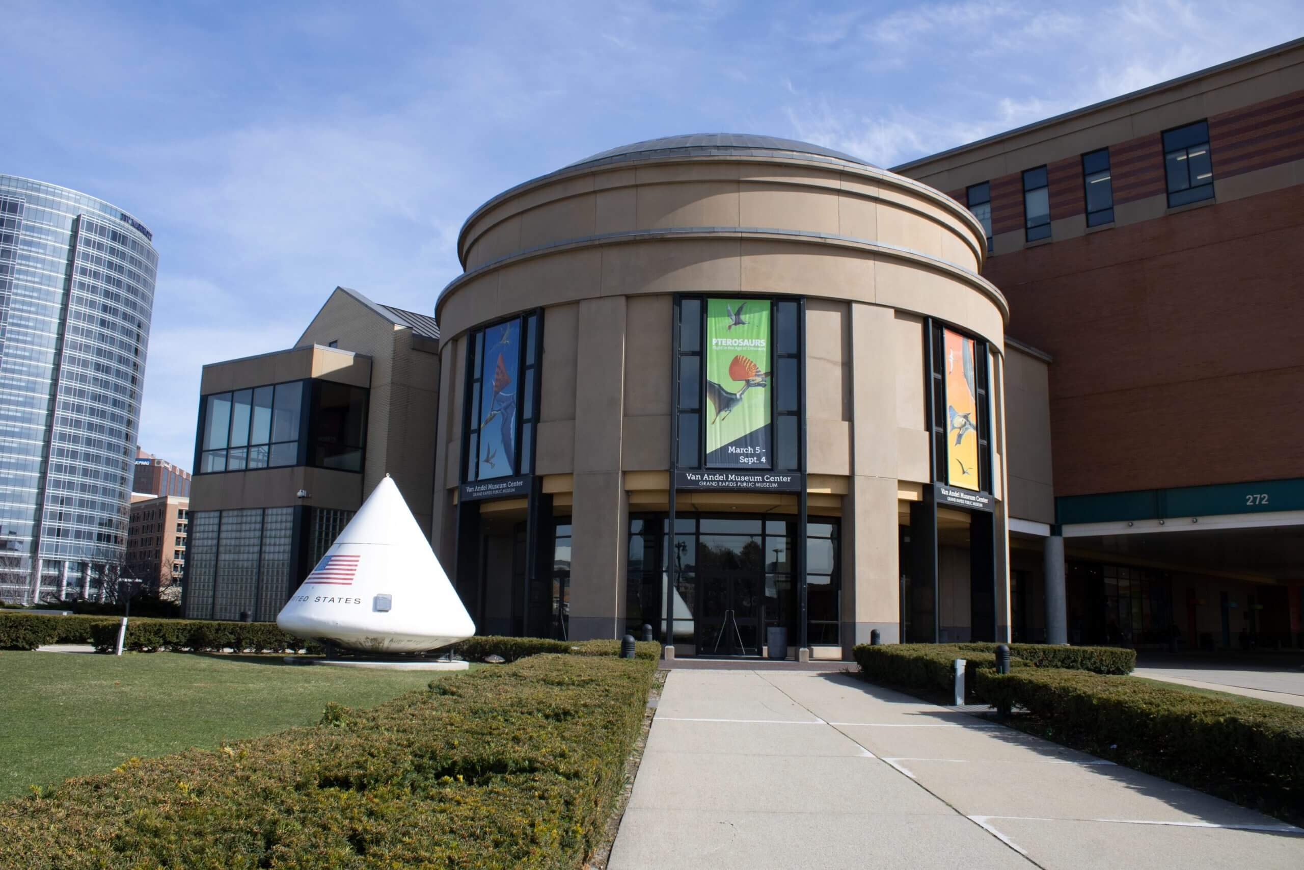 Other sights include the Grand Rapids Public Museum, Grand Rapids Art Museum, and a historic downtown area. Frank Lloyd Wright’s May House was built in the 1900s for Meyer S. May, the son of the founder of A. May and Sons clothing store. May was the first to hang clothes in a store on Batts hangers, those clippy ones.