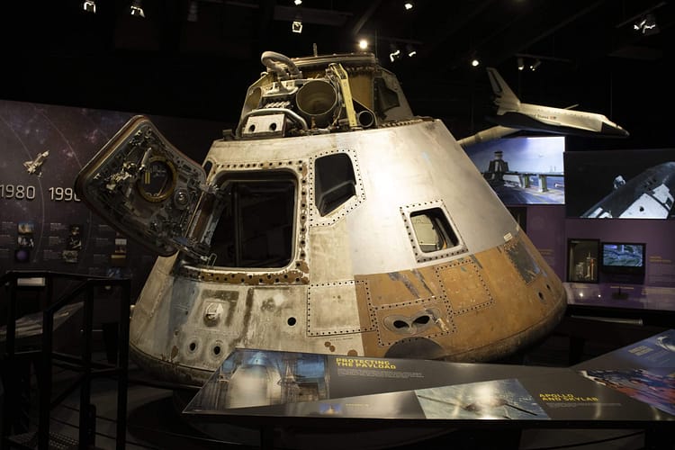 The centerpiece of the museum is the Apollo command module that brought astronauts back from Skylab, the space station before the International Space Station. You can ask staff to turn the light on for you to look inside. How often do you get to see inside a real used command module identical to the one that brought men back from the moon?