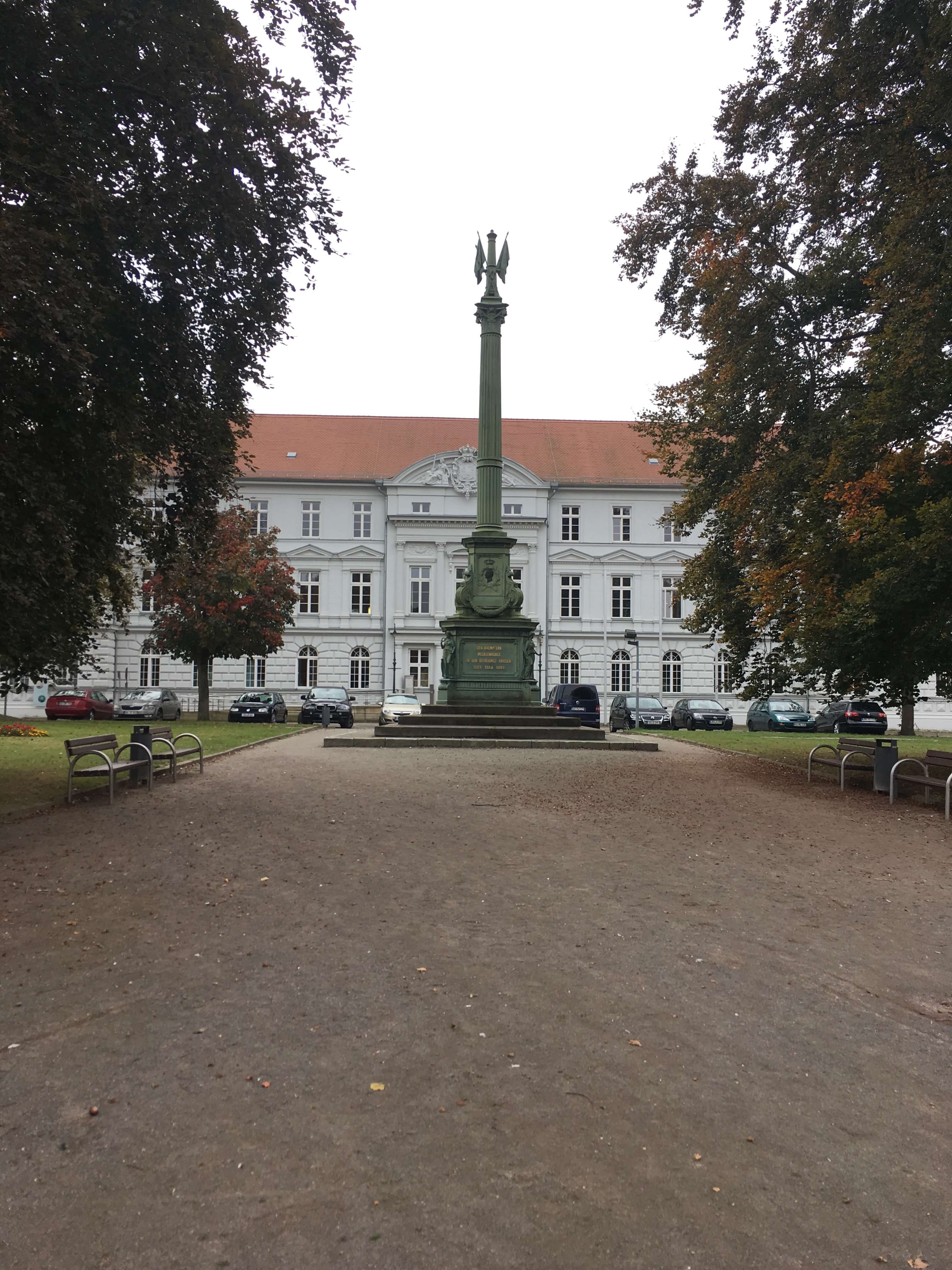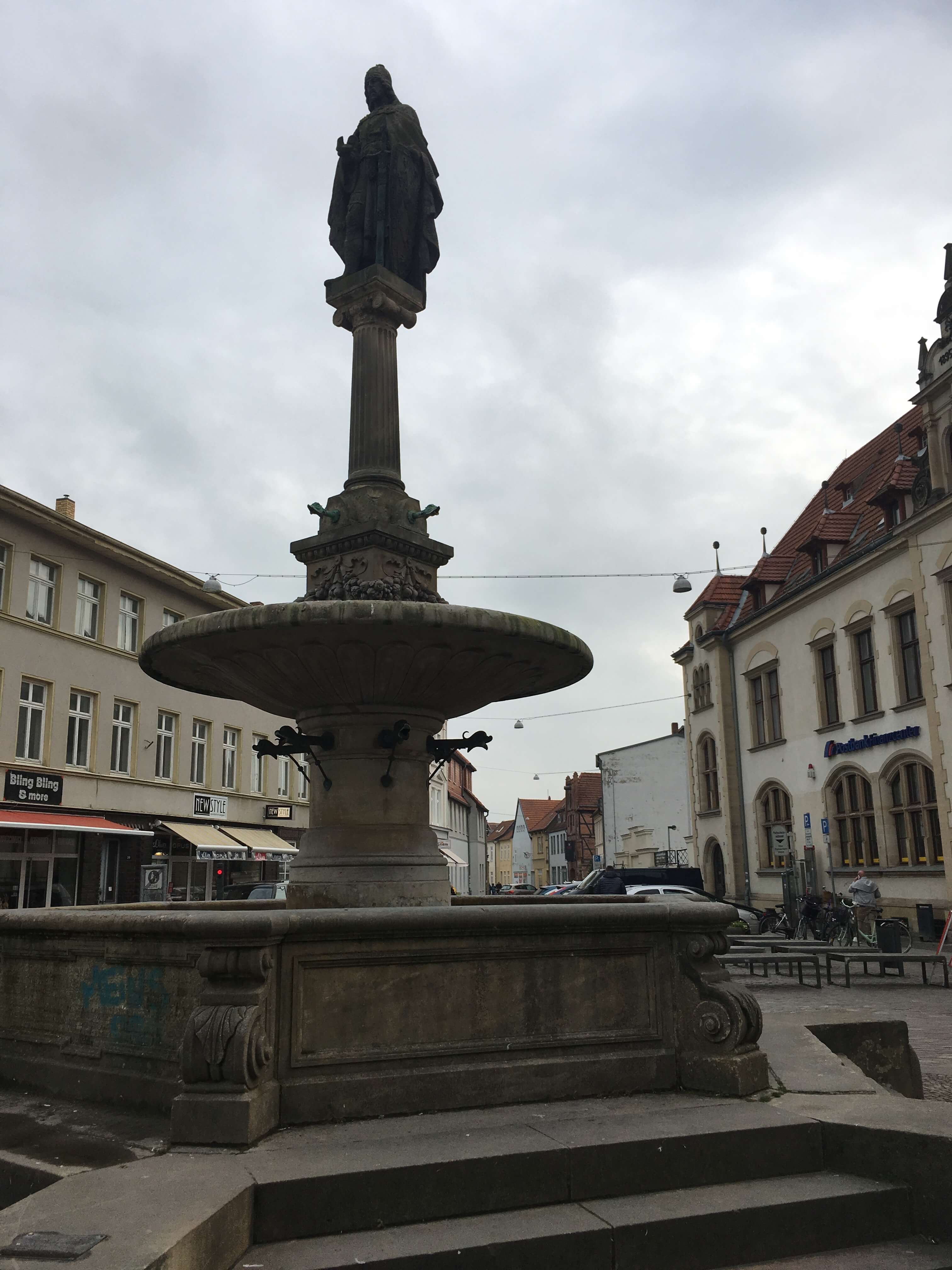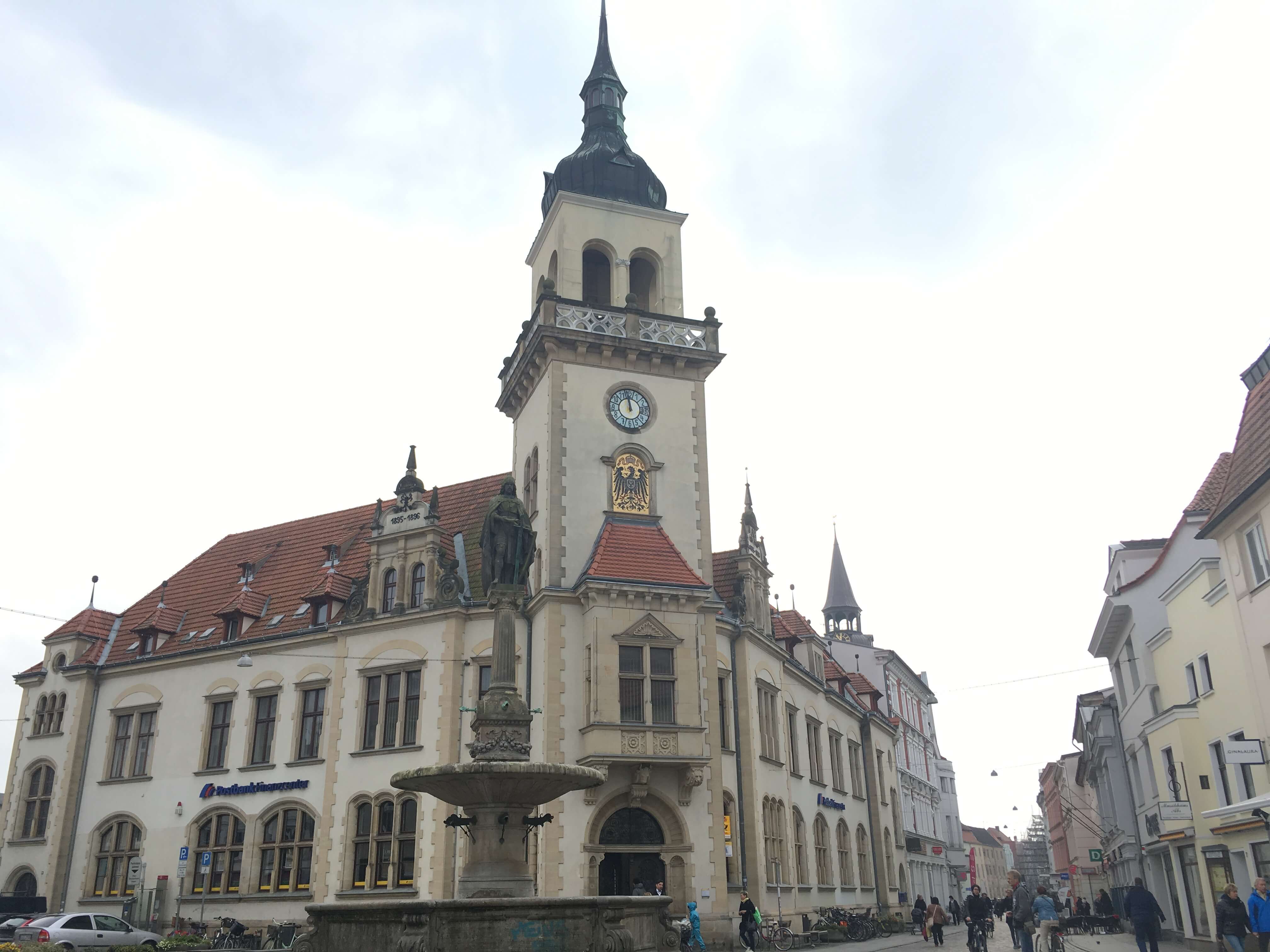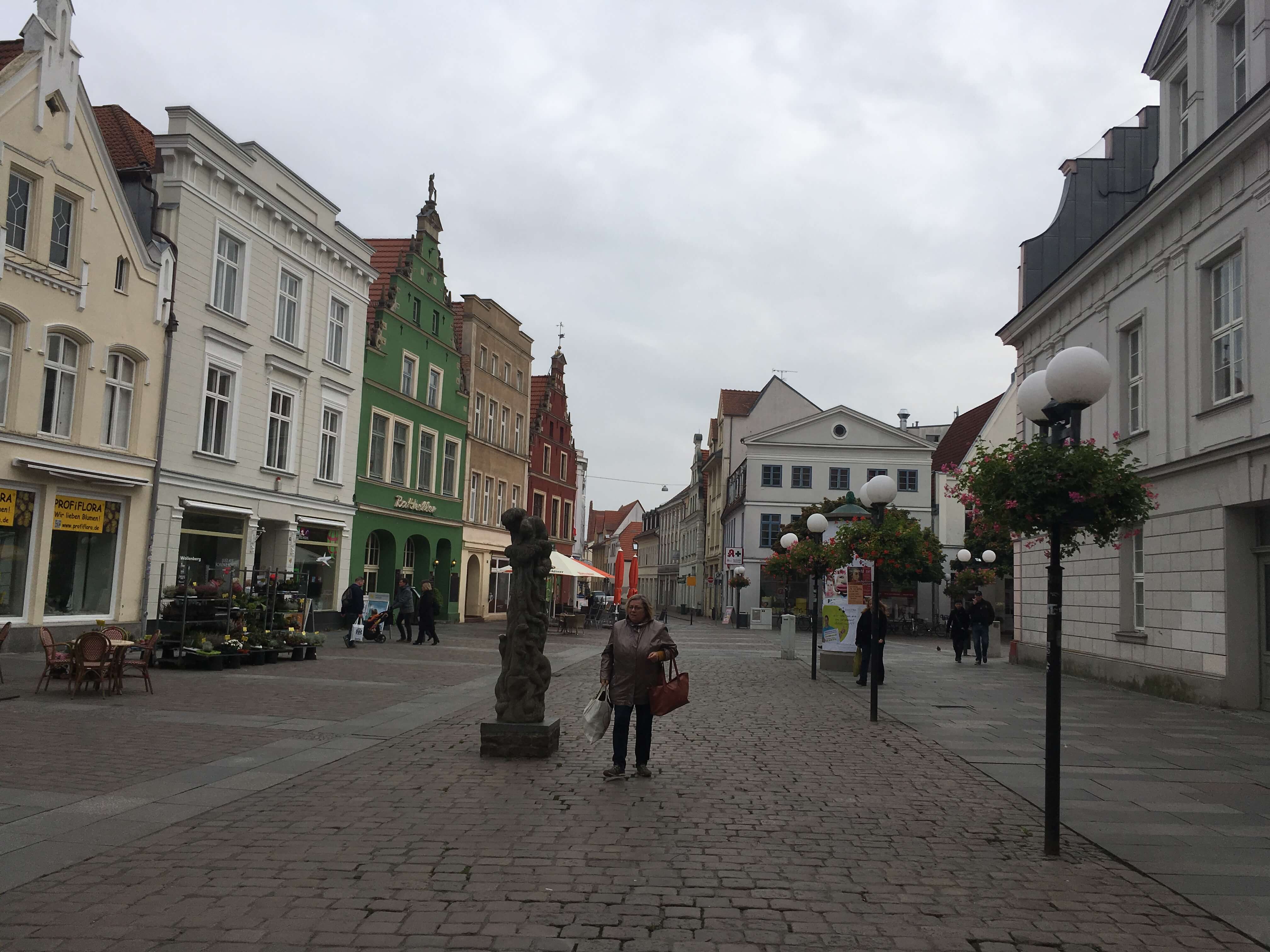 In the town centre, the Marktplatz is a pedestrianised area surrounded by Hanse-style buildings topped with gabled terracotta roofs. The post office is a historically significant building that was built more recently but mimics the architectural style of its surrounding neighbours to fit in.