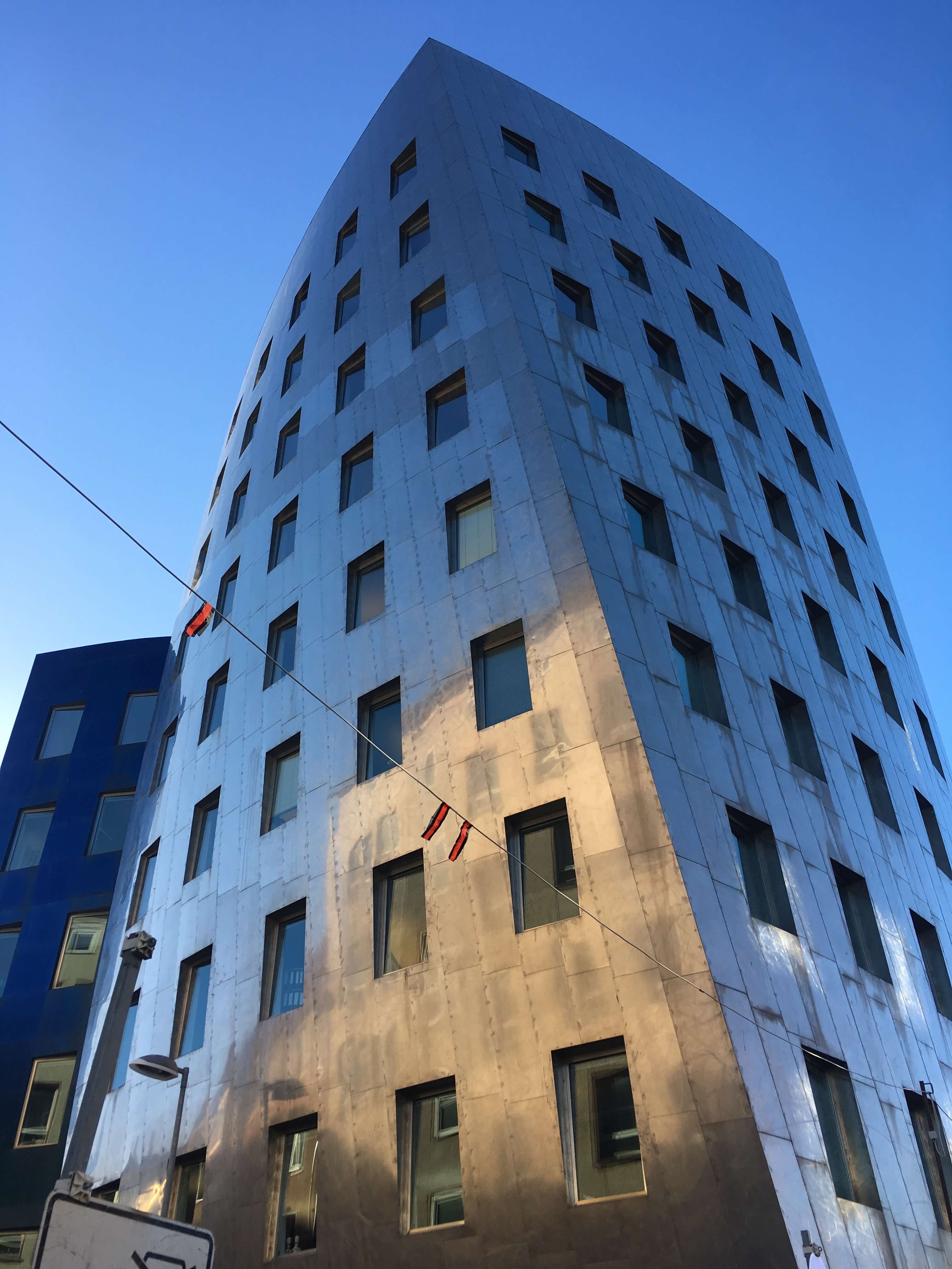 In terms of buildings that are still around, the Gehry Tower designed by Frank Gehry is hated by some and loved by fans of postmodern architecture. The 19th century opera house has an oddly-shaped square in front of it near an upscale shopping area and outdoor restaurants.