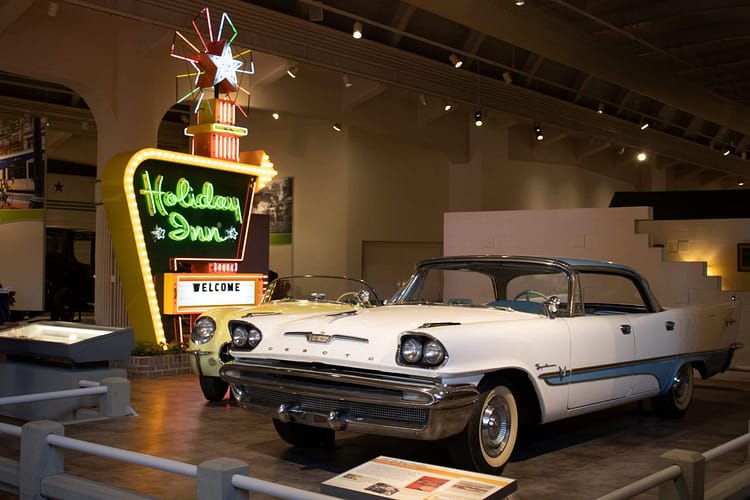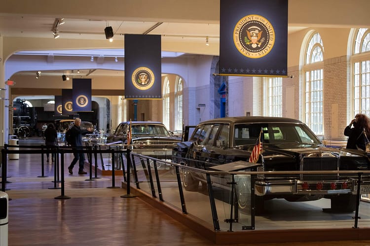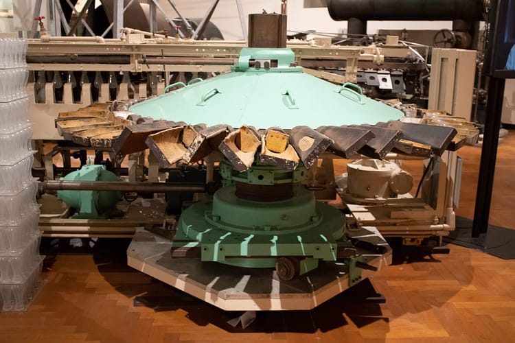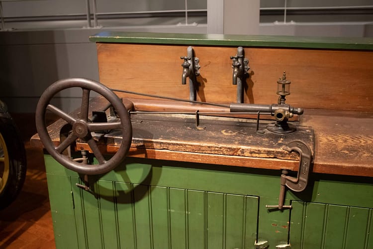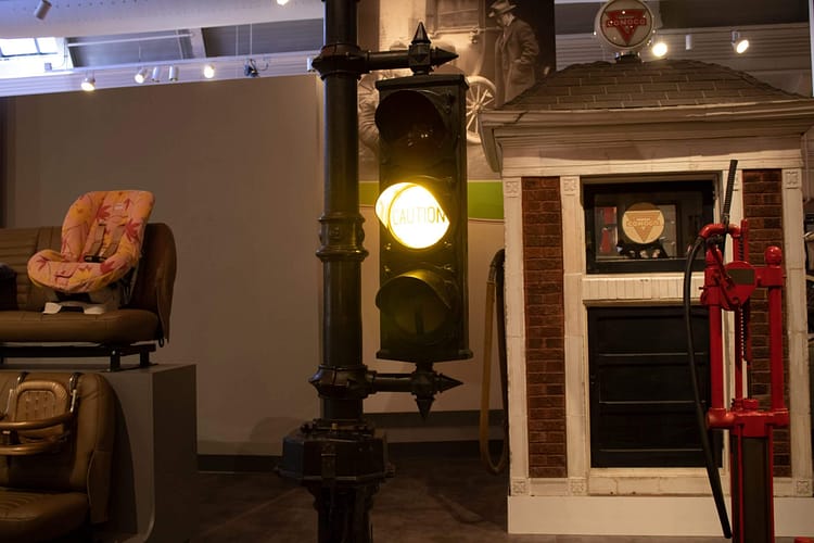 Non-vehicle exhibits include Henry Ford’s kitchen sink engine that his wife, Clara, helped him operate. The yellow light in the traffic signal was invented in Detroit when a traffic officer added the light labelled “caution” to create the world’s first three-colour traffic light in 1920, the exact light is on display in the museum. Corning’s glass ribbon machine made it possible to produce 700 light bulbs a minute, making electric light affordable to all and putting glass blowers out of work.