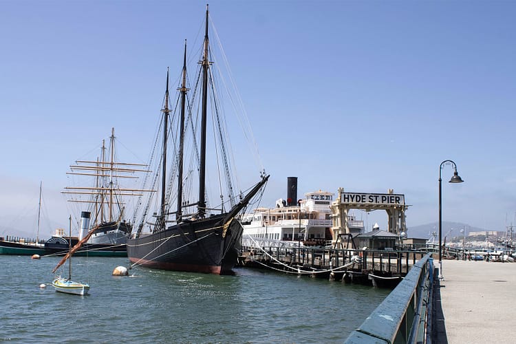 The pier is noted to be an important crossing point before the Golden Gate Bridge was built in 1937. US Highway 101 crossed by car ferry here connecting the northern side of the San Francisco Bay’s roads. The Eureka was closed for the season when I visited, but the schooner C.A. Thayer, built for the lumber trade was open. It was built in 1895 and sailed until 1950 to catch cod in the latter half of its life, making it the last commercial sailing boat on the west coast.