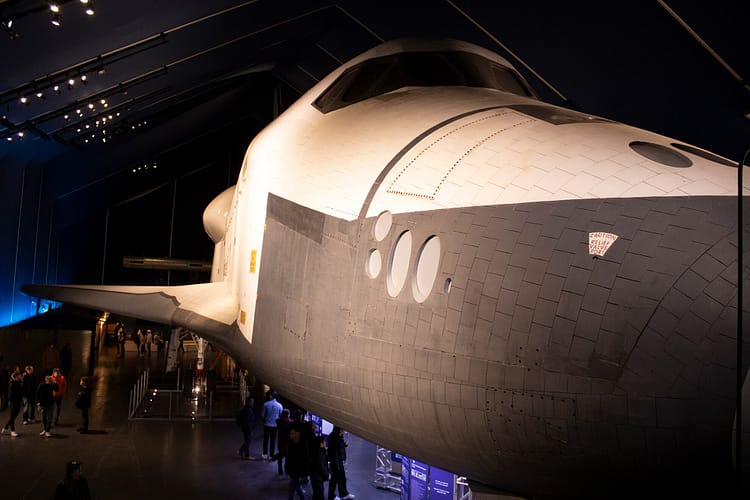 The hangar elevator works and they offer rides on it, but they just take you back up to the flight deck. It’s a missed opportunity to transport guests efficiently to the hangar level below. The Space Shuttle Enterprise is equally poorly conserved. The ceramic tiles aren’t original, the nozzles are covered up, and the canopy is too small to allow guests to take any meaningful photos. The Concorde sitting outdoors is just a shame.