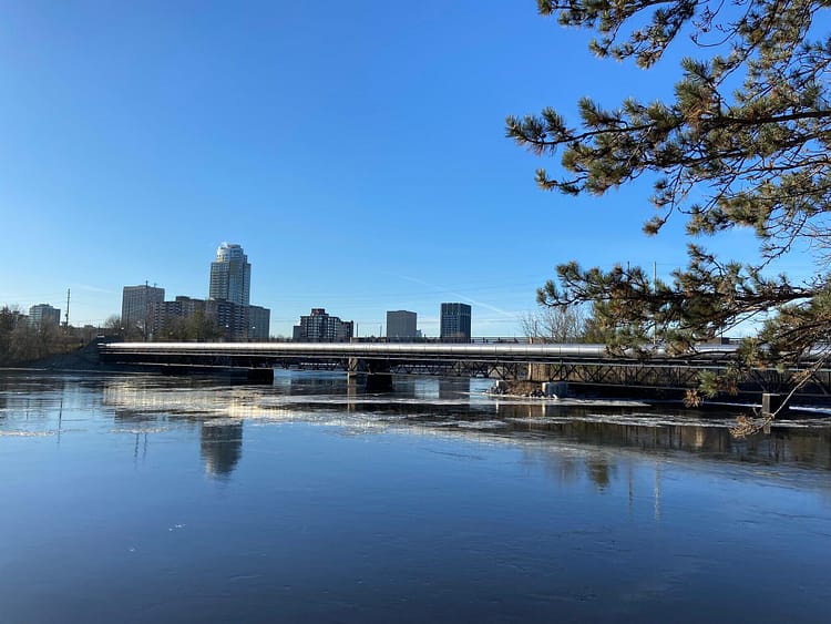 Lemieux Island is home to a water purification plant and a dog park. The stone bridge leading to the island is very narrow so pay attention especially when water plant trucks are passing through. Dogs on the island love to run up and down its little hill and wade in the water when it isn’t frozen. Its only connection to the Quebec side of the river is via a decommissioned railway bridge, do not use it.