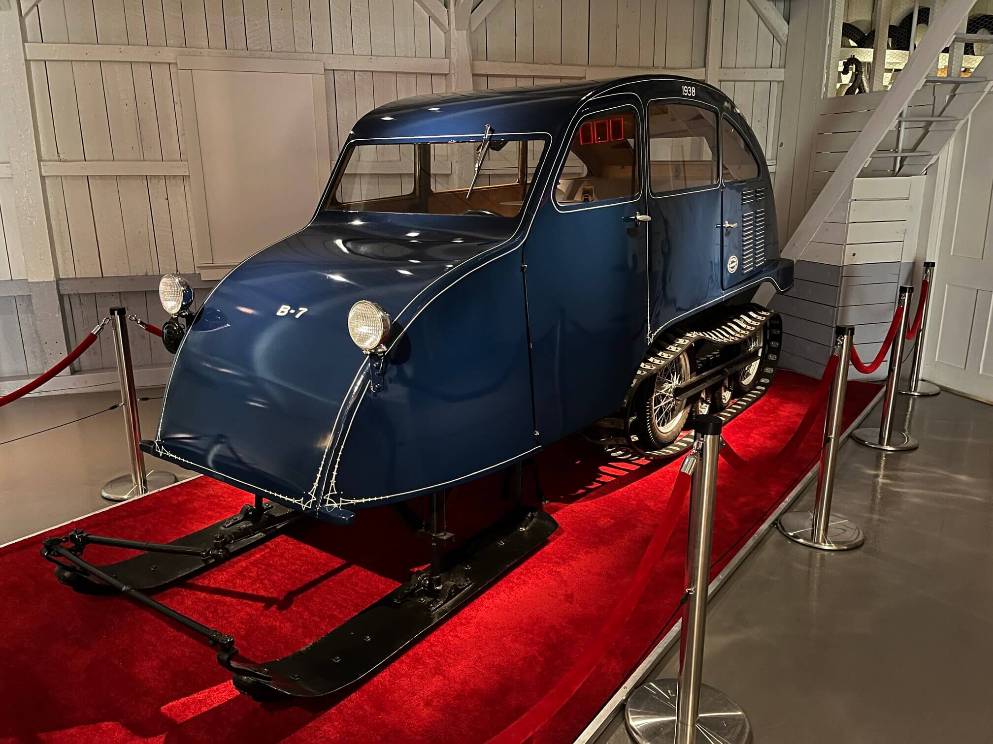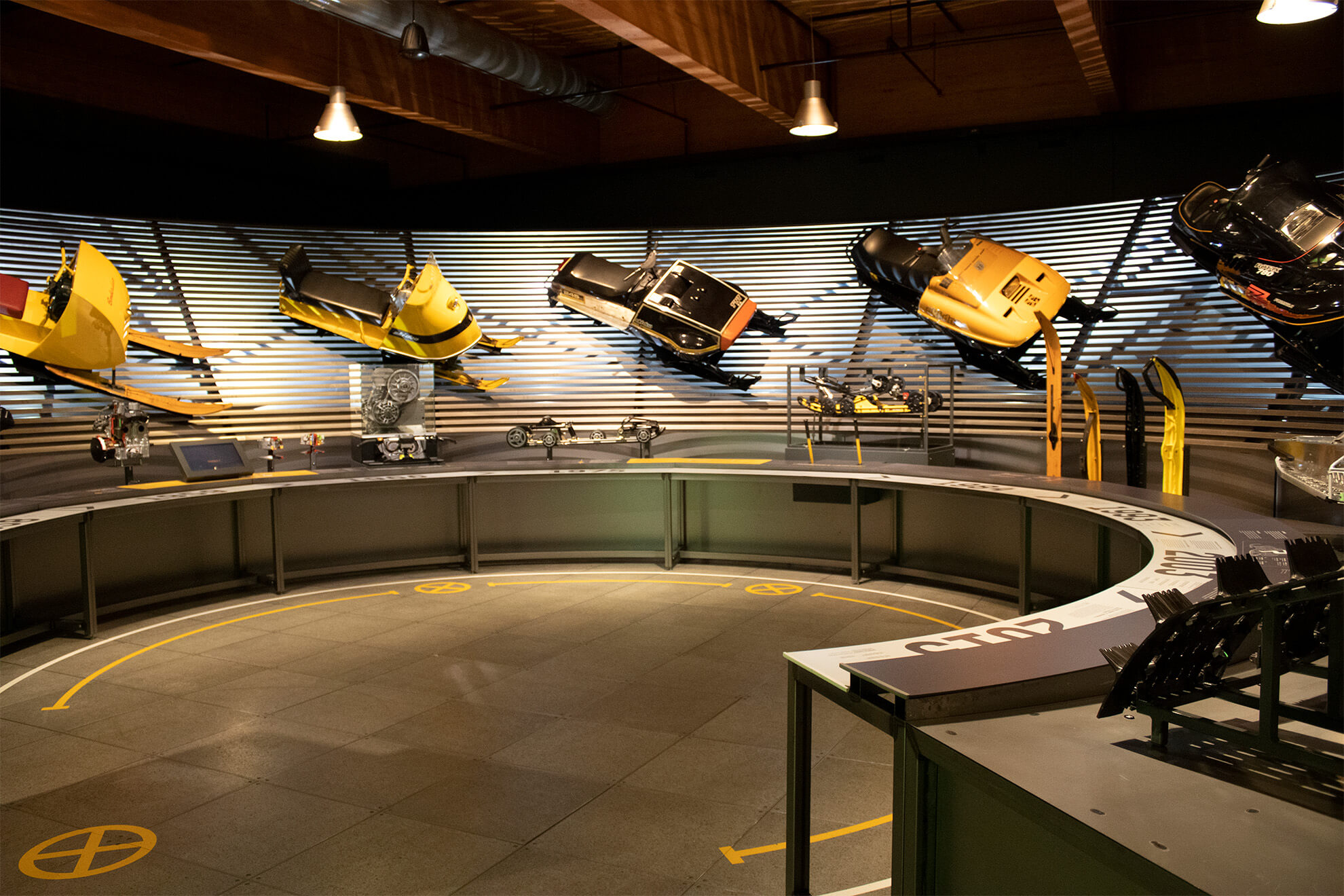 The museum has snowmobiles, trains, and a flight simulator for visitors to interact with. Most of the exhibits at the waist level are touchable.