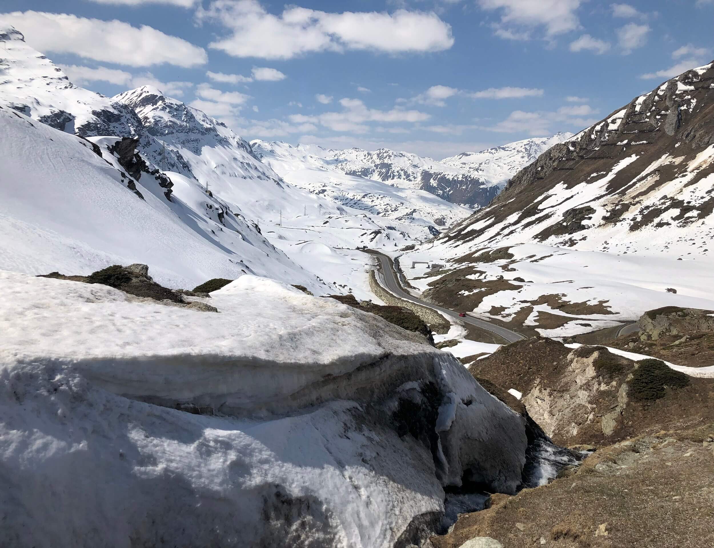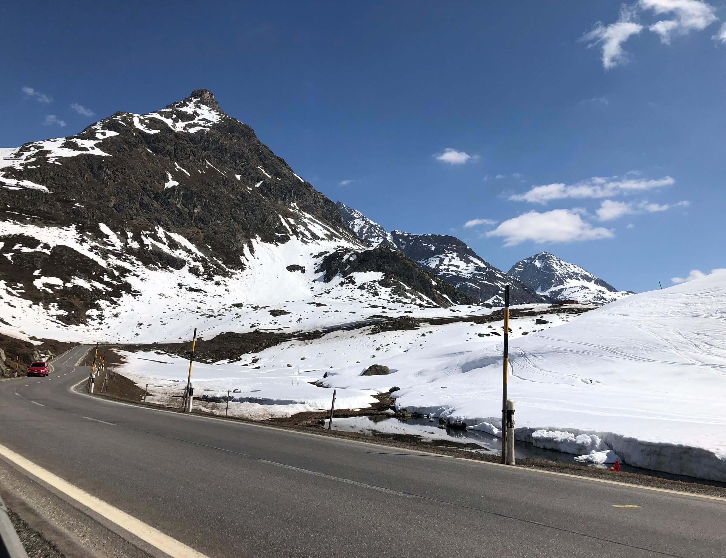 The Julierpass reaches almost 2,300 meters above sea level at its highest, which means that cars lose more than 20% of its power and handling suffers due to decreased tire pressure in the cold and high altitude. It is open year round so you are welcome to take on its dozens of serpentine turns even in the snow.