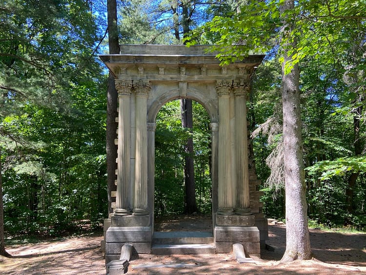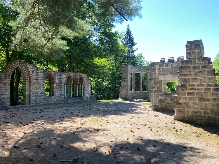 The main residence at Moorside is the centrepiece of the entire estate. King entertained guests and dignitaries here along with his dog, Pat. Today, visitors can dine at the estate just like Roosevelt did in 1943. The grounds of Moorside feature a collection of relocated ruins. “A Window on the Forest” and the “Arc de Triomphe” were both taken from the now-demolished British American Banknote Company in Ottawa.