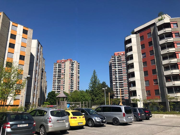 As early as the 1950’s, high-rise buildings with concrete slabs arranged at right angles sprouted out of the ground. In the following decades, similar housing projects were built around it. It has a suburban train station, a grade-separated tramway, schools and supermarkets in the middle of each development project, and centralised shopping facilities. There was very little in the was of jobs in this area, and most would have to commute to the centre of Bern for jobs. A slice of Eastern Europe in the Swiss capital.