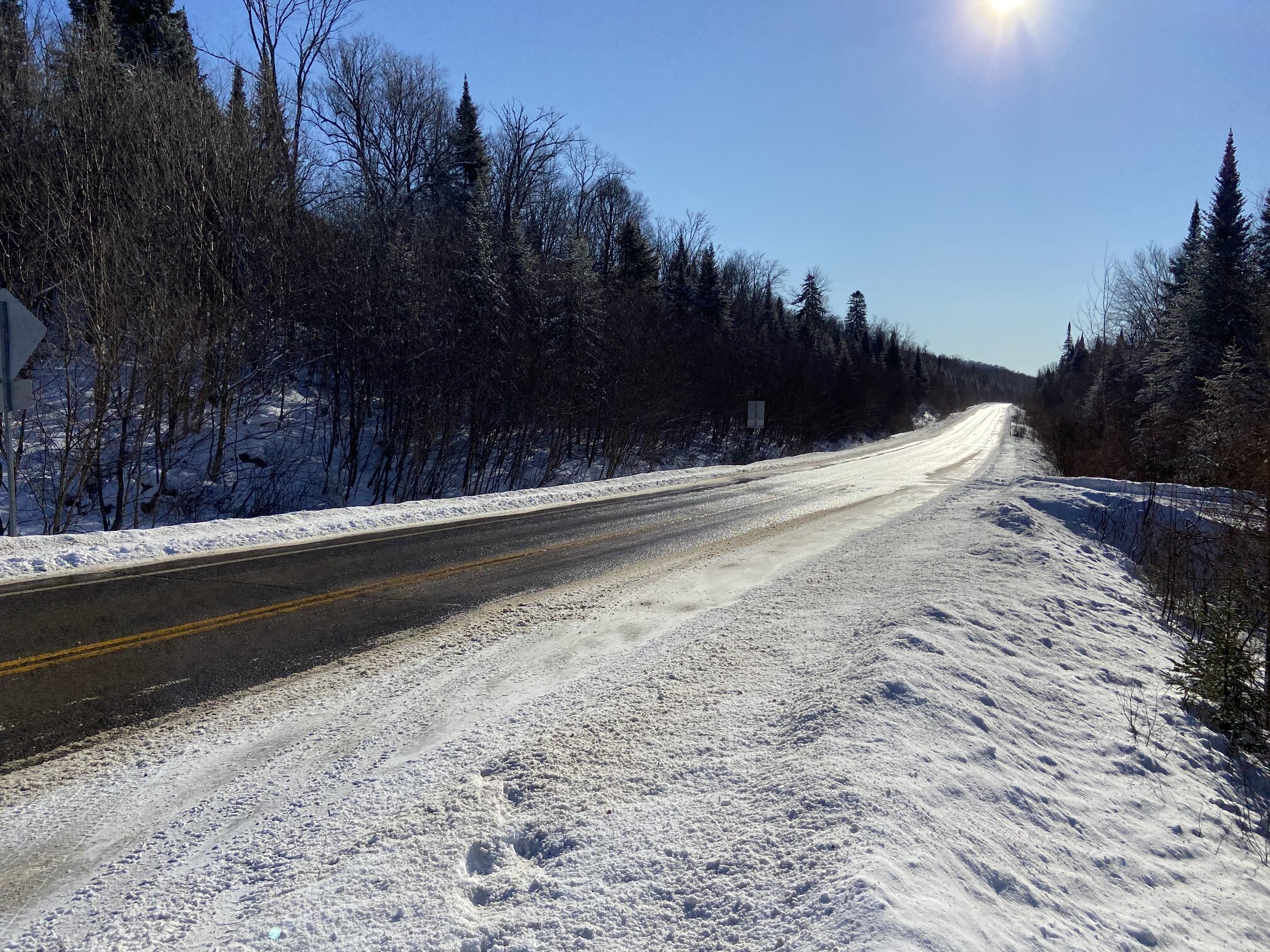 The circuit around Mont Tremblant in the Laurentians is mostly known for cycling in summer. The entire circuit has over 1000 meters in elevation change and features twists with bad camber. However, it’s almost impossible to cycle safely in the winter, so it’s mostly cars between December and April.