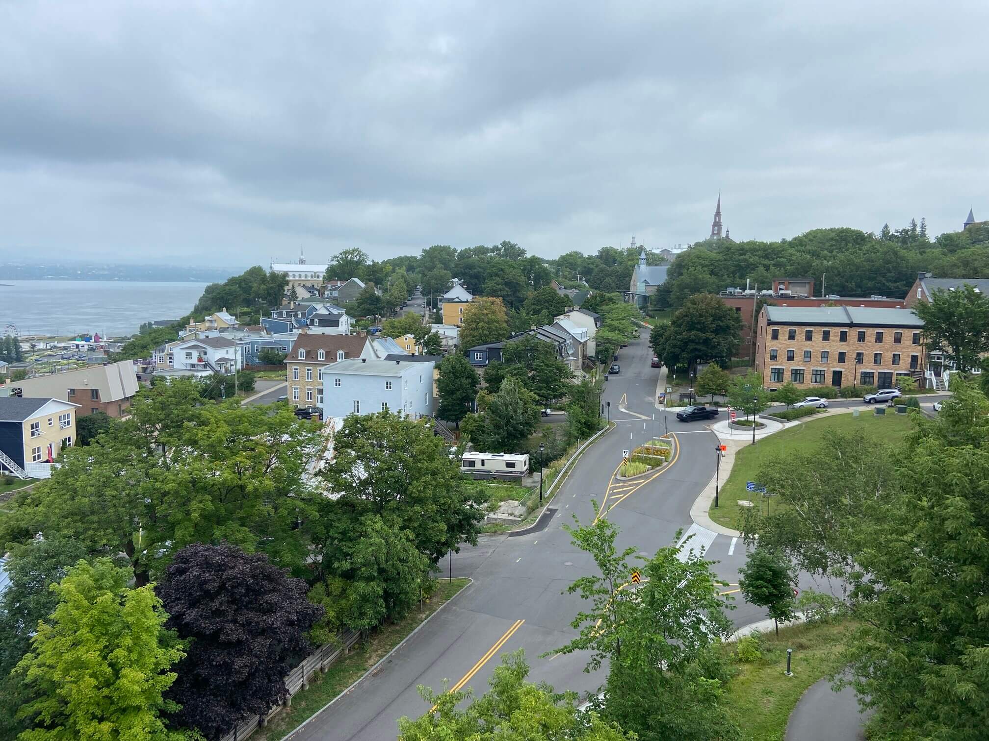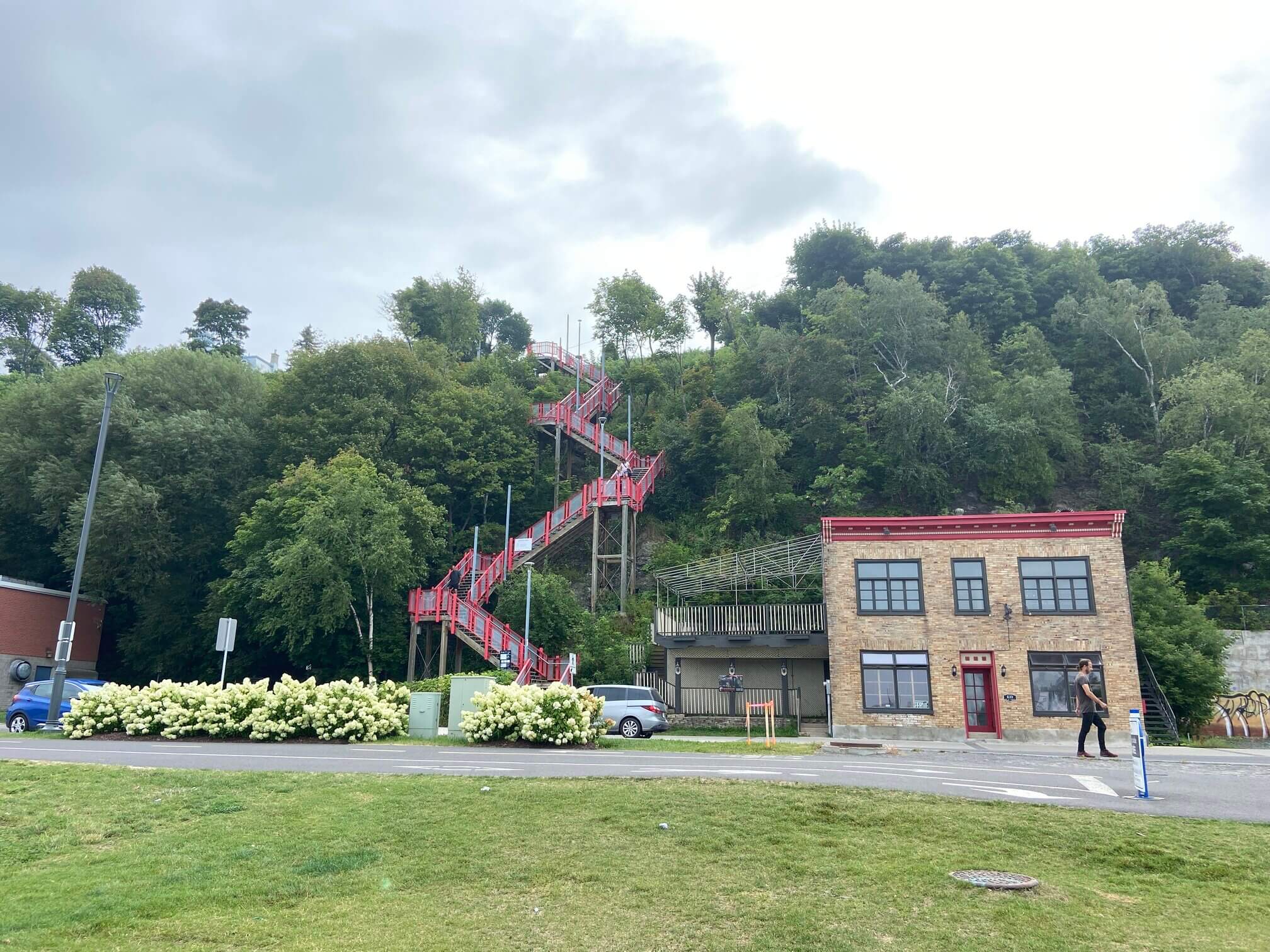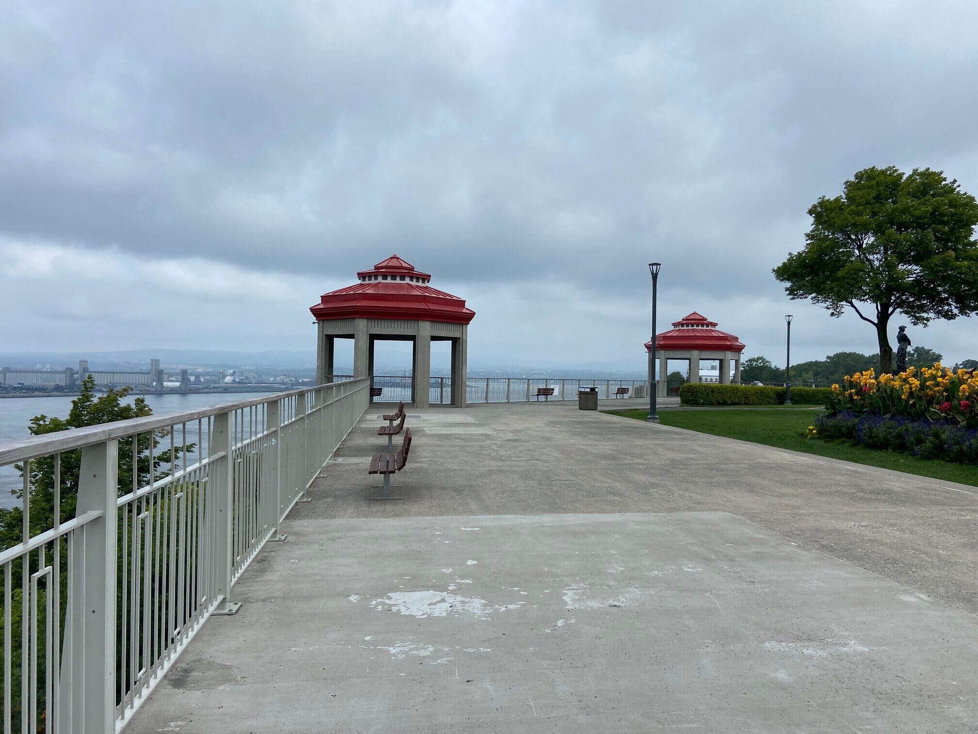 I ran into Lévis completely by chance. At the conclusion of my trip to Quebec City, I looked across the St. Lawrence River and saw interesting features of a red staircase and a terrace with pavilions at a town. I decided to drive over the next morning to see what it was – it was Lévis.
