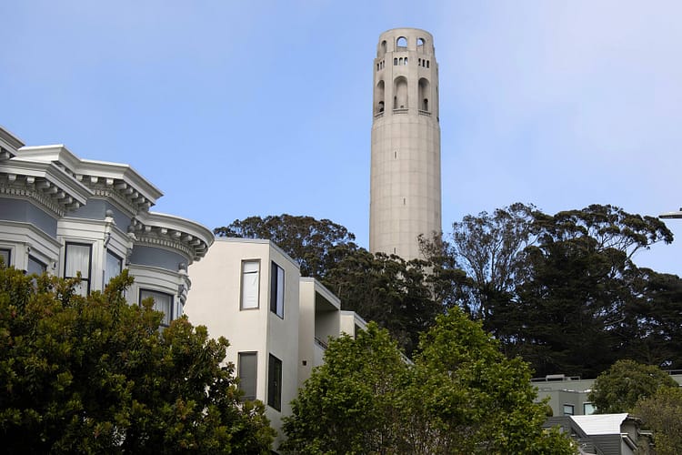 Dwayne Johnson, playing a rescue helicopter pilot, instructed his family to gather at Coit Tower after an apocalyptic San Andreas Fault earthquake. Elevator tickets to the top cost $10, but I thought the view on ground level at the top o Telegraph Hill was just fine. Save your money, especially on a foggy day. It was built with funds donated by Lillie Hitchcock Coit who bequeathed her wealth to the city upon her death to build something of “beauty.” The socialist-themed murals on the inside depicting life during the Great Depression were a subject of controversy at the time, reminding me of the Diego Rivera murals in Detroit.