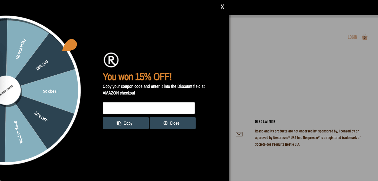 Dissatisfied, I gave it another go, this time clicking on the “United States” option instead of the “Canada” option… and it worked! All I had to do was click Amazon.ca next to make sure I got the code for the right website. I spun the wheel and only got 15%.