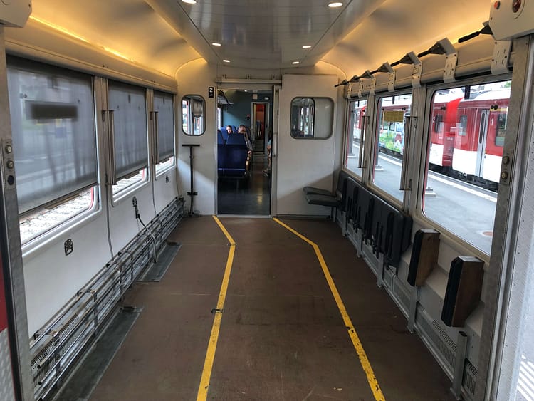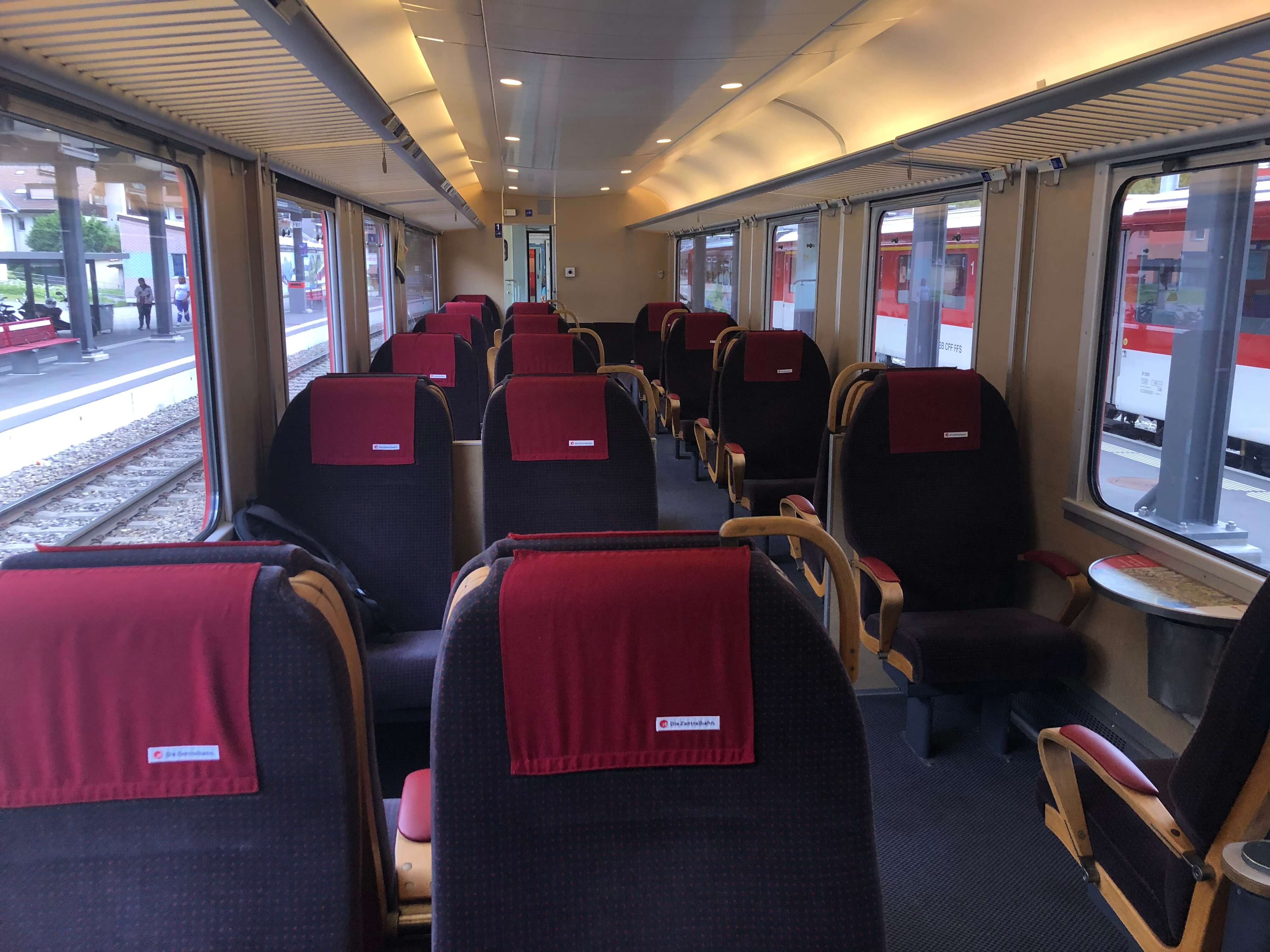 This electric train is much older with refurbished carriages from decades ago. The wood-themed interior is always a tell-tale sign. Unfortunately, this classic train is not air-conditioned so you’ll have to sit next to one of the slidable windows to catch some air in summer. As it’s name suggests, the train does have plenty of space for skis and bicycles in a storage area suitable for serving holidaymakers in both summer and winter.
